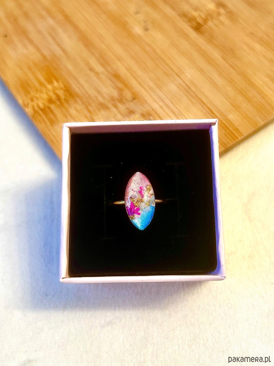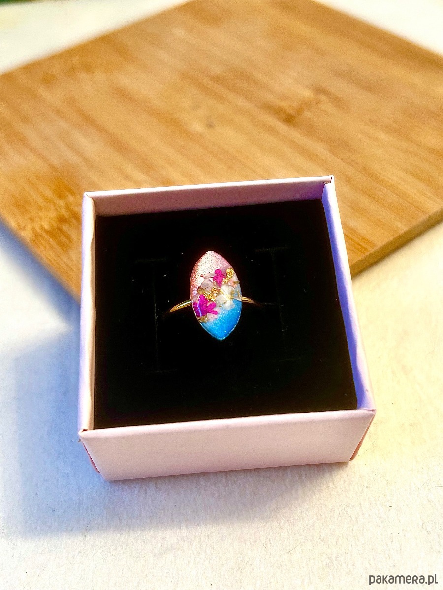 Kolory, którymi się inspirowałam tworząc ten pierścionek pochodzą z makijażu słynnej piosenkarki, która podczas ostatniego swojego koncertu była ubrana i pomalowana takimi kolorami :)