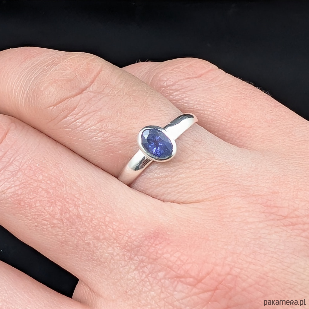 Oprawa srebra polerowana na błysk. Wymiary elementu z kamieniem 5 x 7 mm. Waga 1,5 g. Rozmiar jubilerski 15.