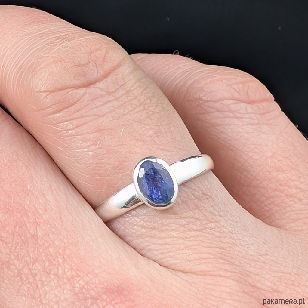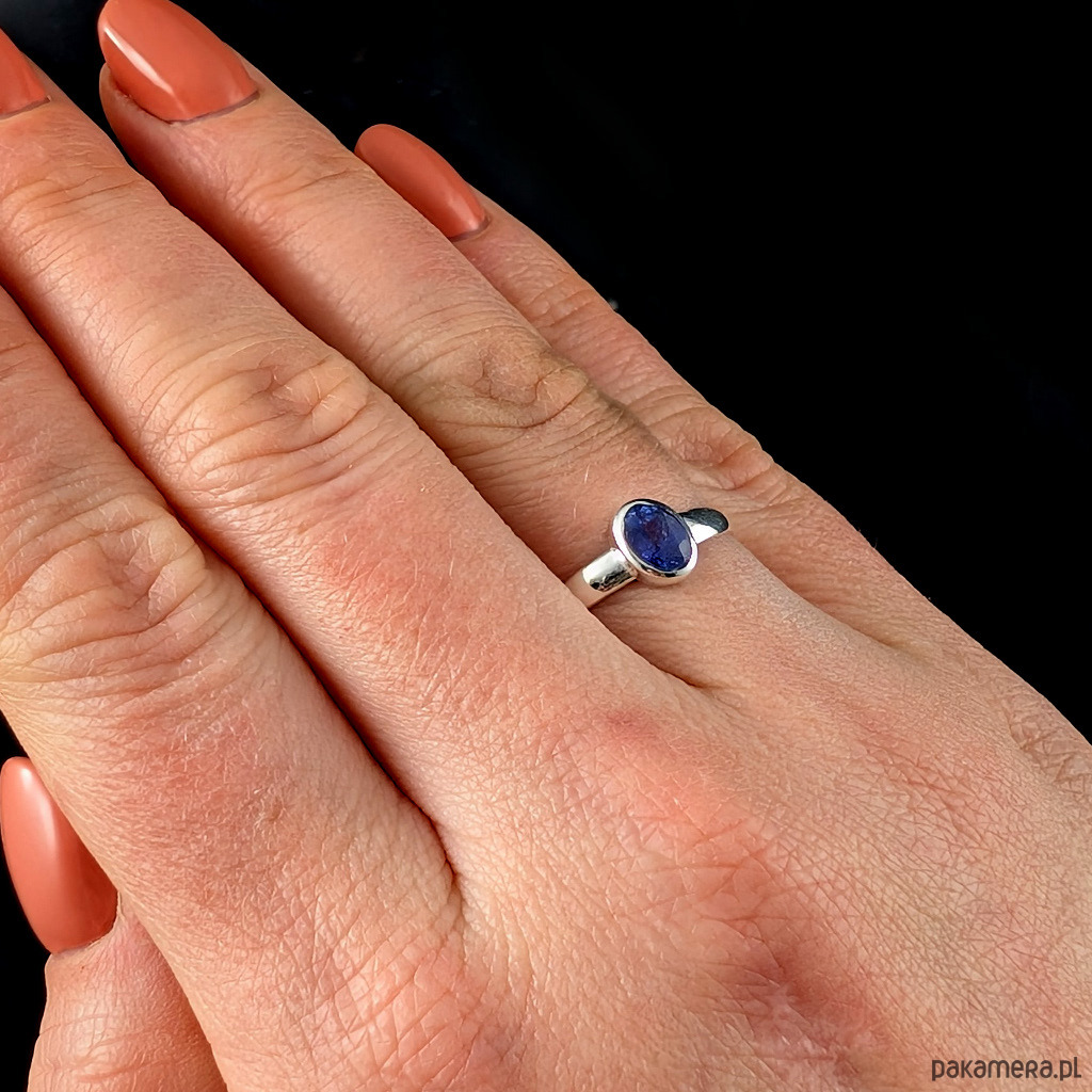 Przepiękny, subtelny tanzanit w oprawie srebra próby 925.