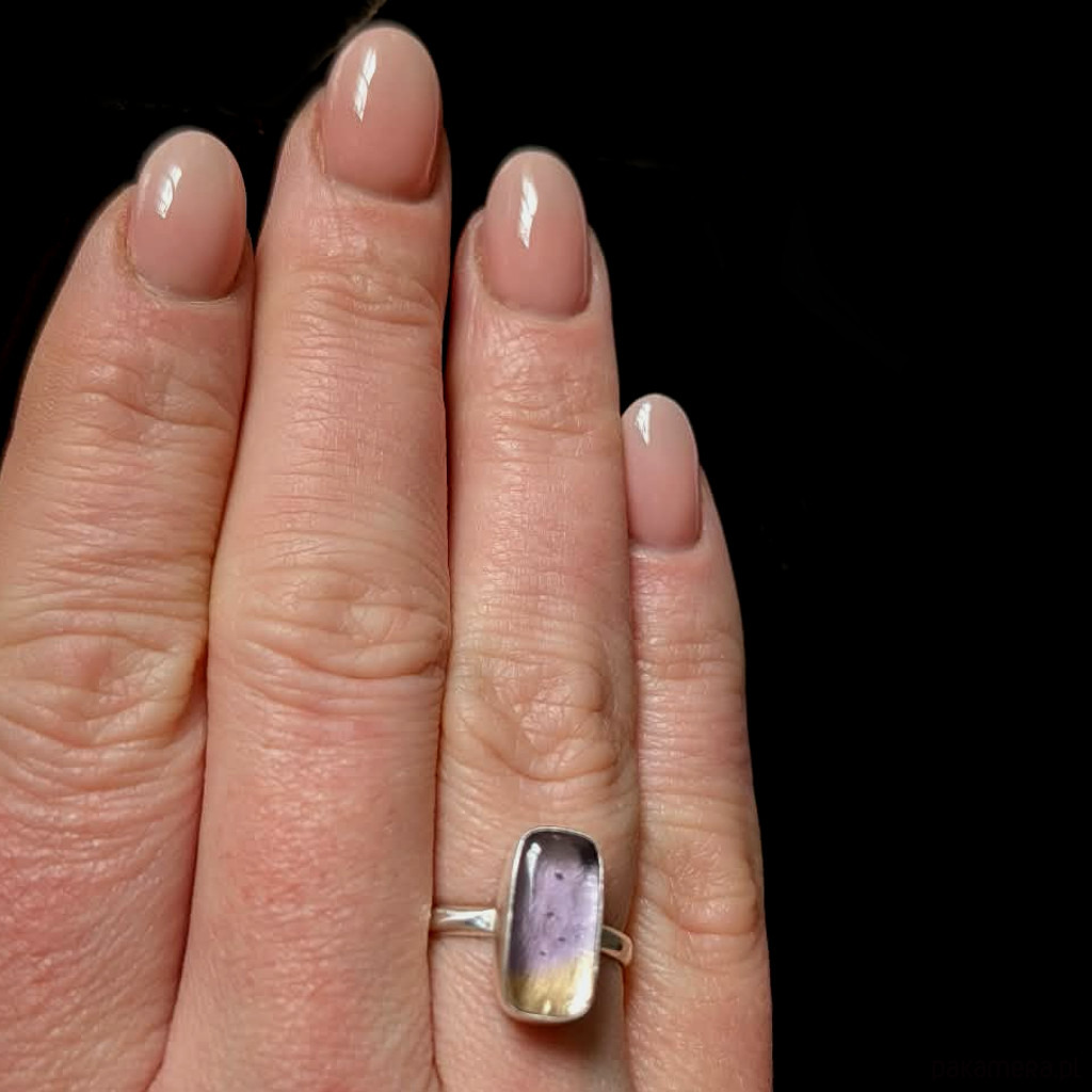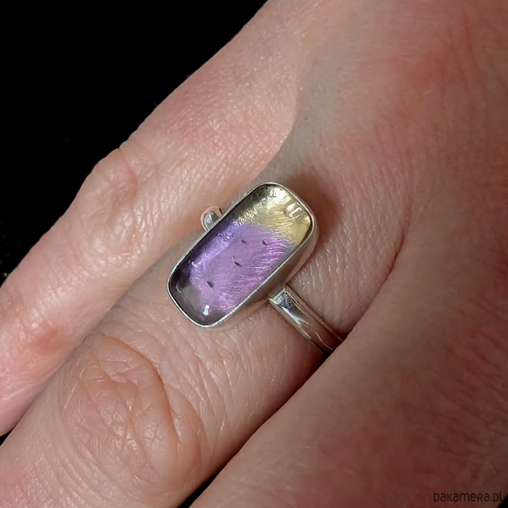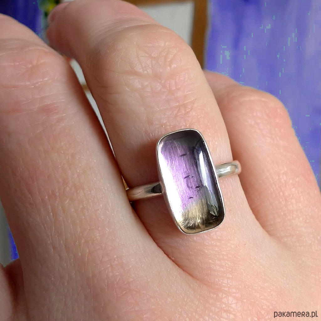Romantyczny pierścionek wykonany ze srebra próby 925 oraz przepięknego ametrynu. Ten piękny minerał to odmiana kwarcu,będąca naturalnym połączeniem ametystu i cytrynu, okaz bardzo przejrzysty, co wspaniale podkreśla stopniowane odcienie kamienia. Wymiary oprawy 14 x 8 mm. Waga 2,67 grama. Rozmiar jubilerski 13. Pierścionek zostanie wysłany w ozdobnym pudełeczku.