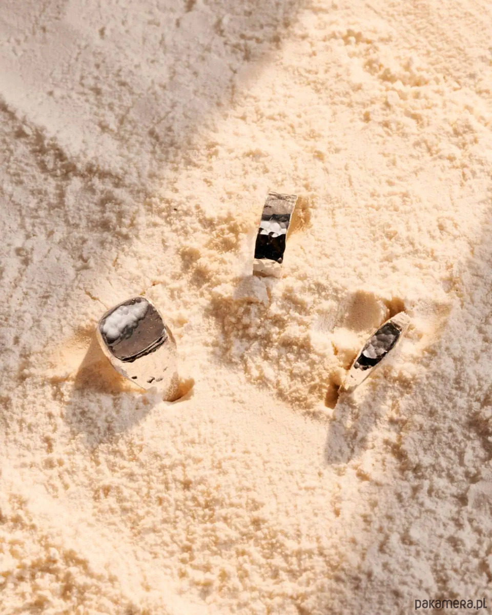 Pierścionek młotkowany srebrny to połączenie minimalistycznej formy z surowym, rzemieślniczym charakterem. Został wykonany techniką młotkowania. Dzięki czemu pierścionek posiada nieregularną fakturę, która odbija światło i nadaje mu niepowtarzalny wygląd. Srebro najwyższej jakości sprawia, że jest odpowiedni do noszenia na co dzień lub na wyjątkowe okazje.