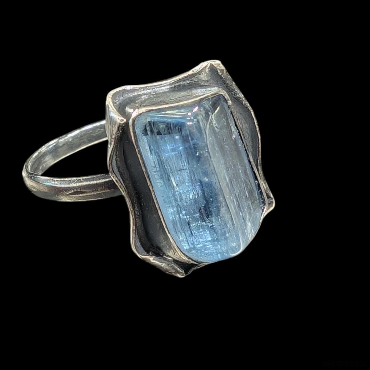 Pierścionek wykonany z oksydowanego srebra próby 925. Ozdobą pierścionka jest pięknie oszlifowany akwamaryn. Wymiary oprawy akwamarynu 16 x 14 mm, szerokość obrączki 2 mm, waga pierścienia 4.7 grama. Rozmiar jubilerski 14, mogę Pierścień zostanie zapakowany w ozdobne pudełeczko.