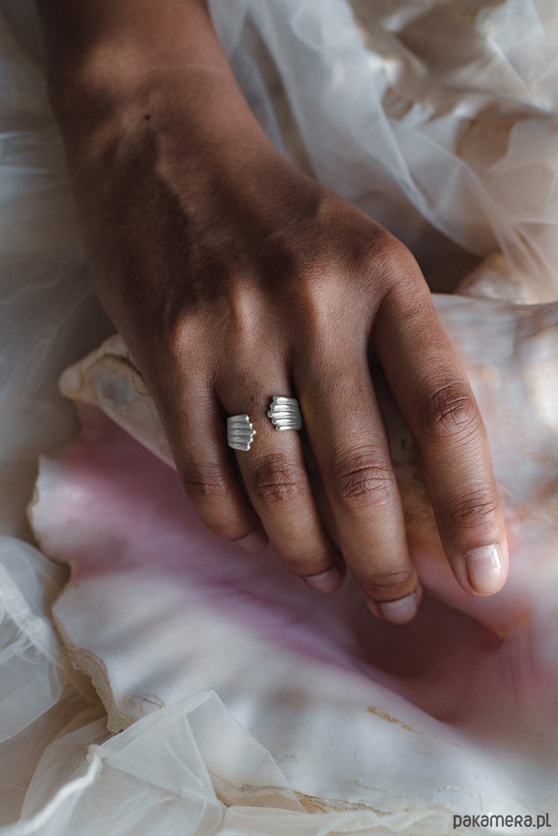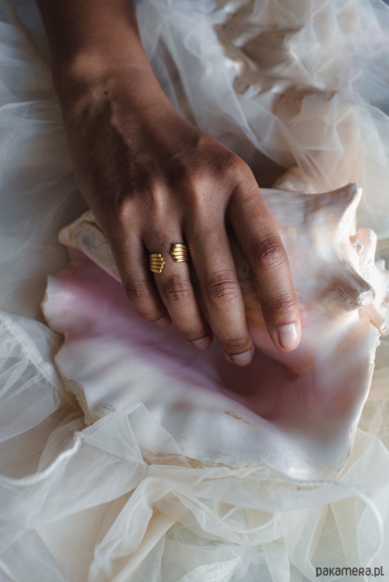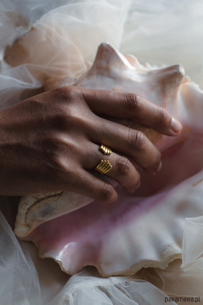 Pierścionek Morski wykonany ze srebra próba 925, pozłacany 24k złotem. Jeden rozmiar regulowany.
