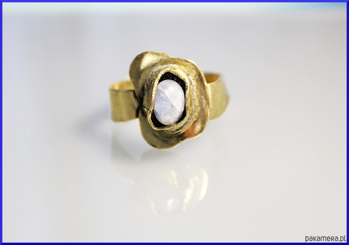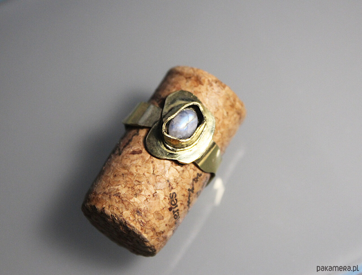 Pierścionek mosiężny z Kamieniem Księżycowym