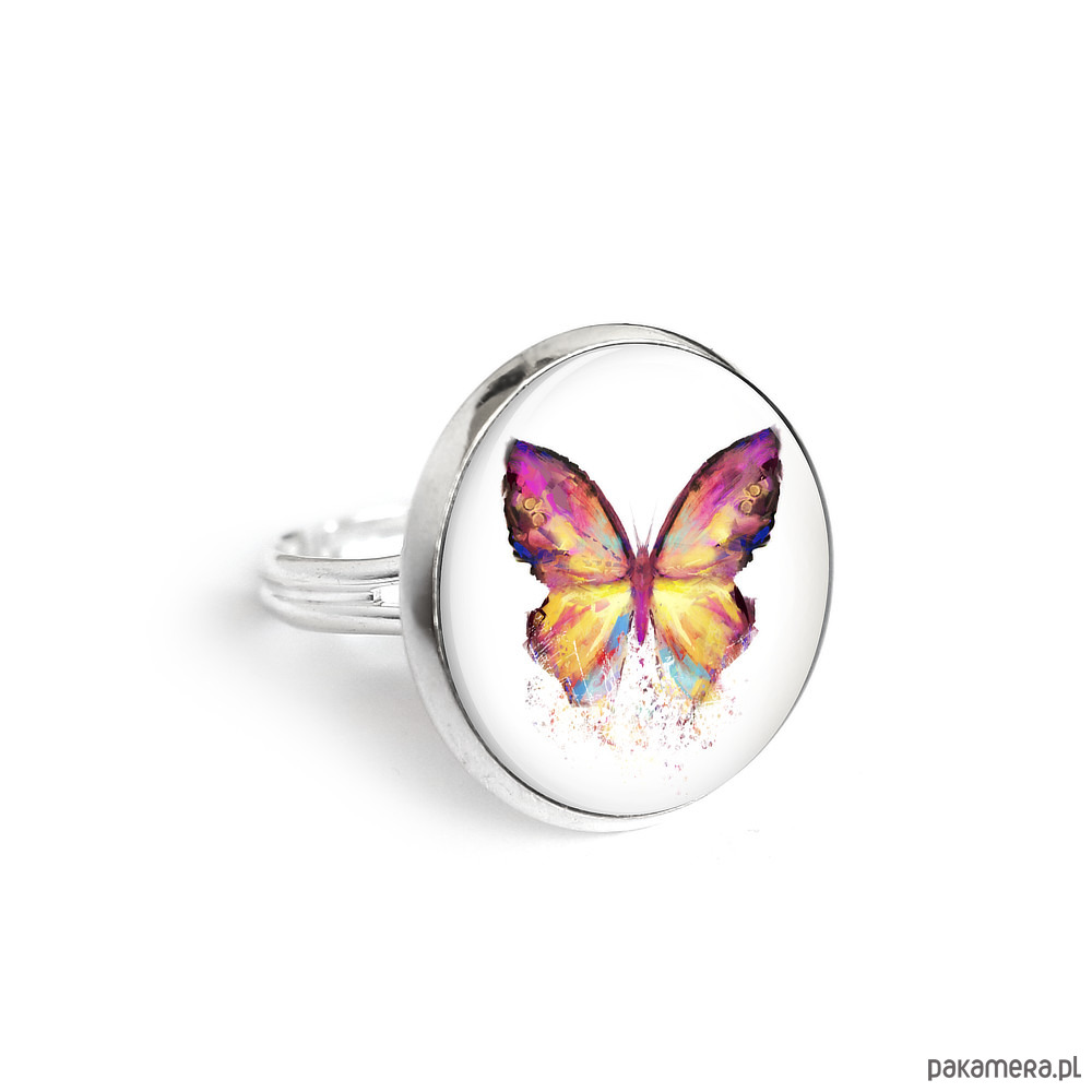 Grafika ukryta w prostym pierścieniu pod osłoną przeźroczystego półokrągłego szkiełka.