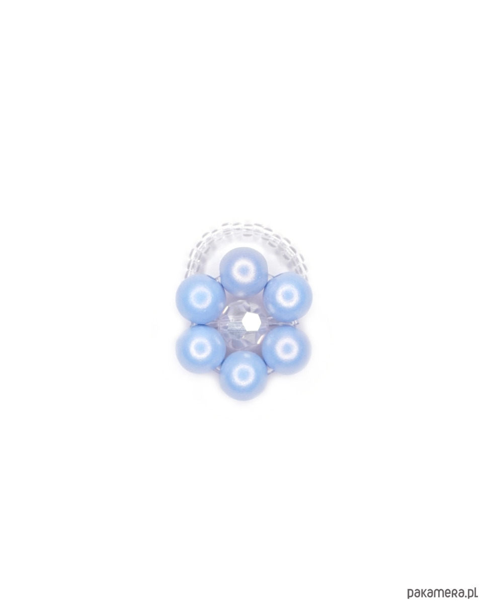 Delikatny i z nutą dziewczęcego uroku – ten pierścionek z koralikowym kwiatkiem to subtelny dodatek, który doda blasku każdej stylizacji. Centralnie osadzony szklany koralik otoczony jest akrylowymi płatkami w błękitnym odcieniu z perłowym połyskiem, tworząc kwiat o lekko vintage’owym charakterze. Przezroczysta, elastyczna baza z drobnych koralików sprawia, że pierścionek dopasowuje się do palca i niemal stapia się ze skórą.