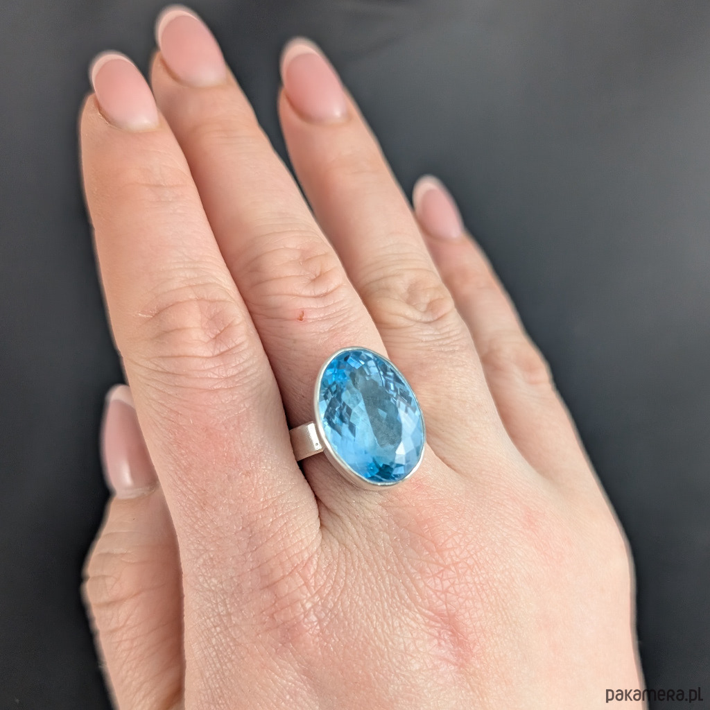 Pierścionek niebiański topaz
