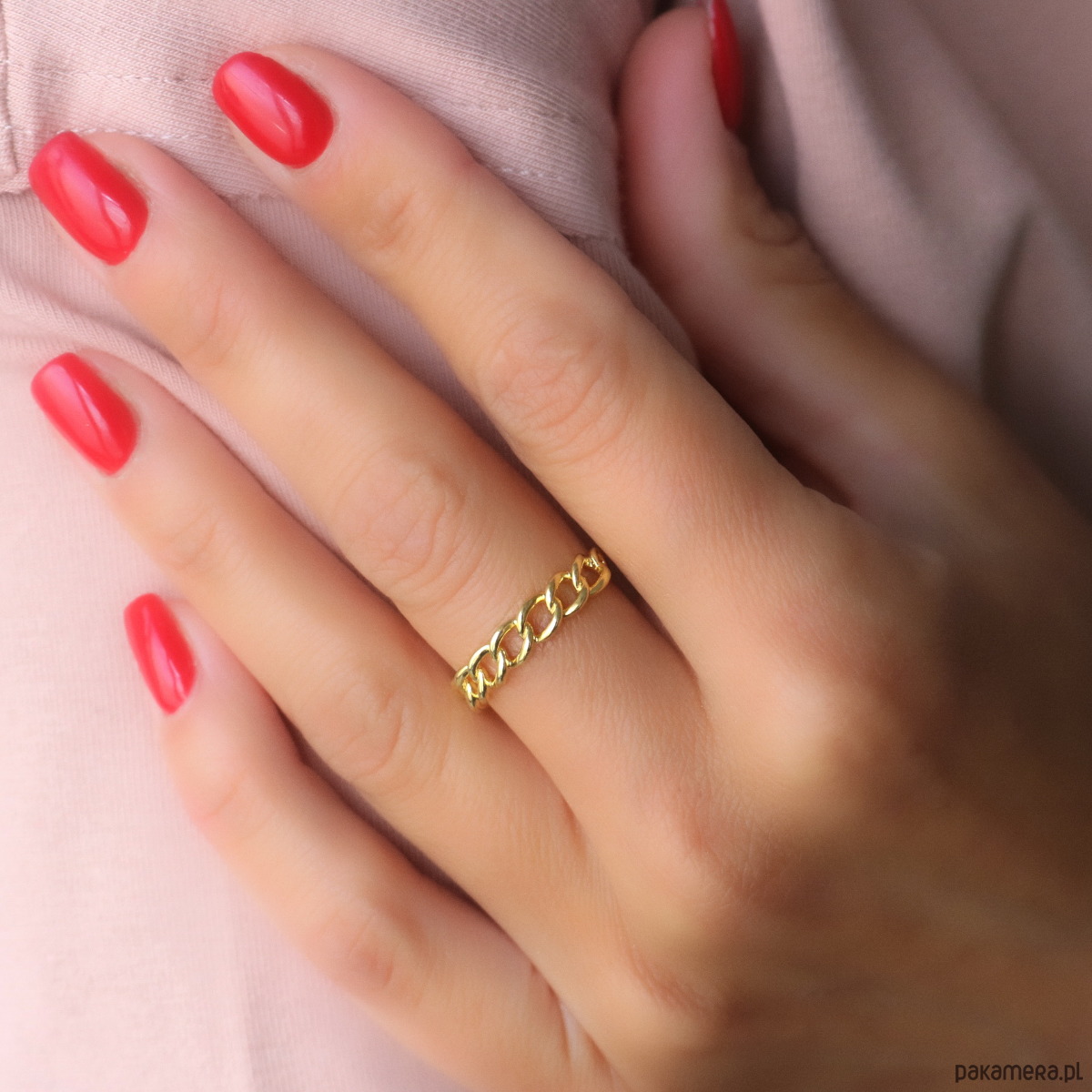 Pierścionek/ obrączka "Braid" pancerka- srebro 925 pozłacane