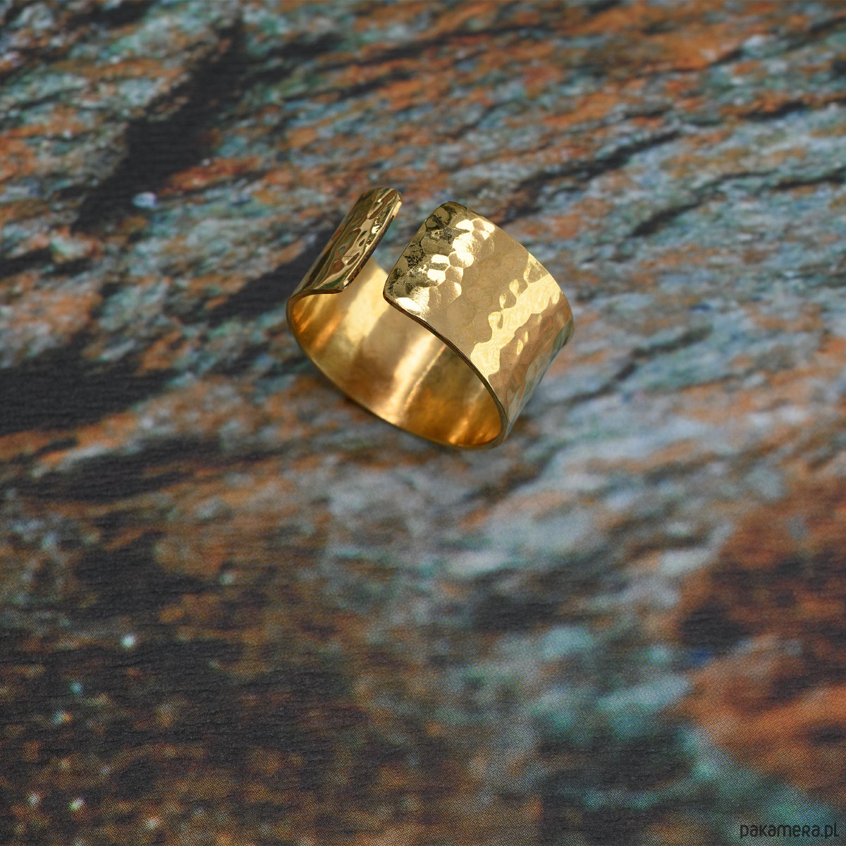 WIKING - Pierścionek artystyczny styl średniowieczny, doginany z przepiękną, młotkowaną fakturą