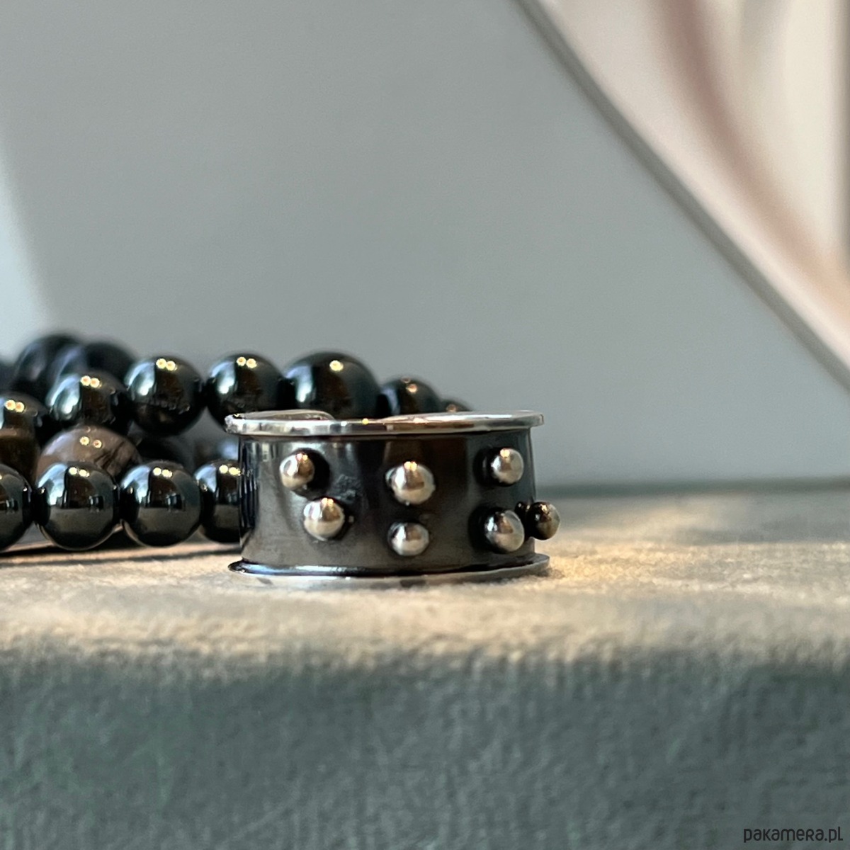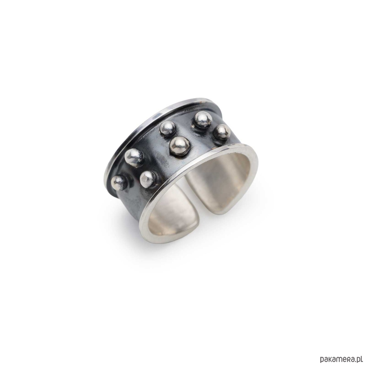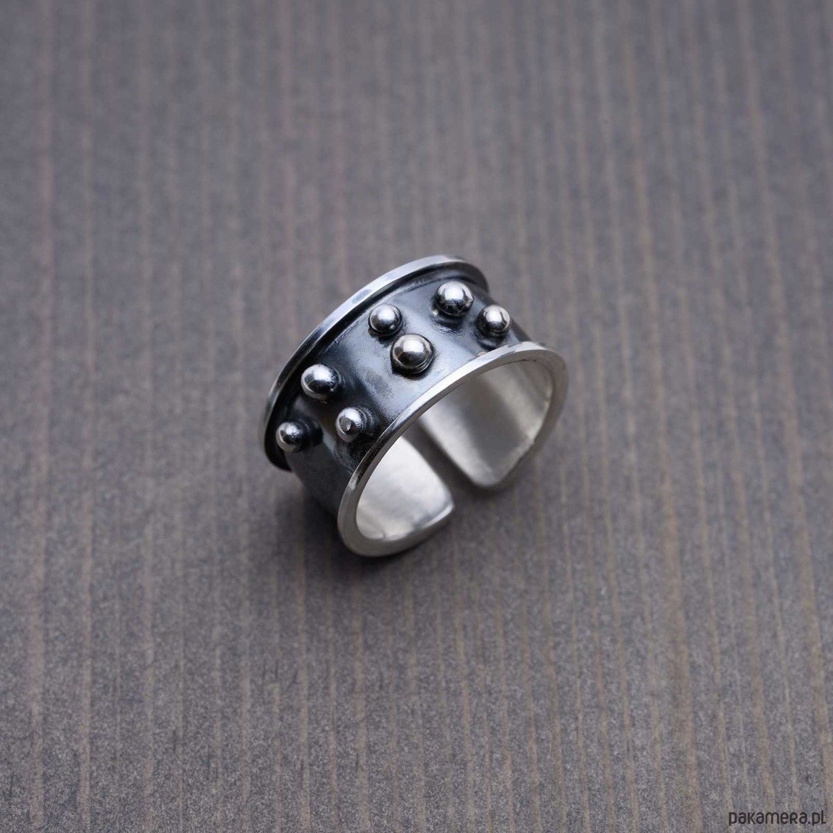 Pierścionek-obrączka, doginany, oksydowany, srebro, szer. 1,0 cm