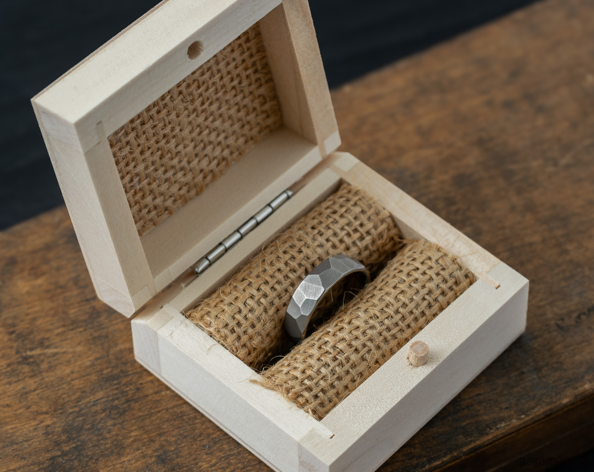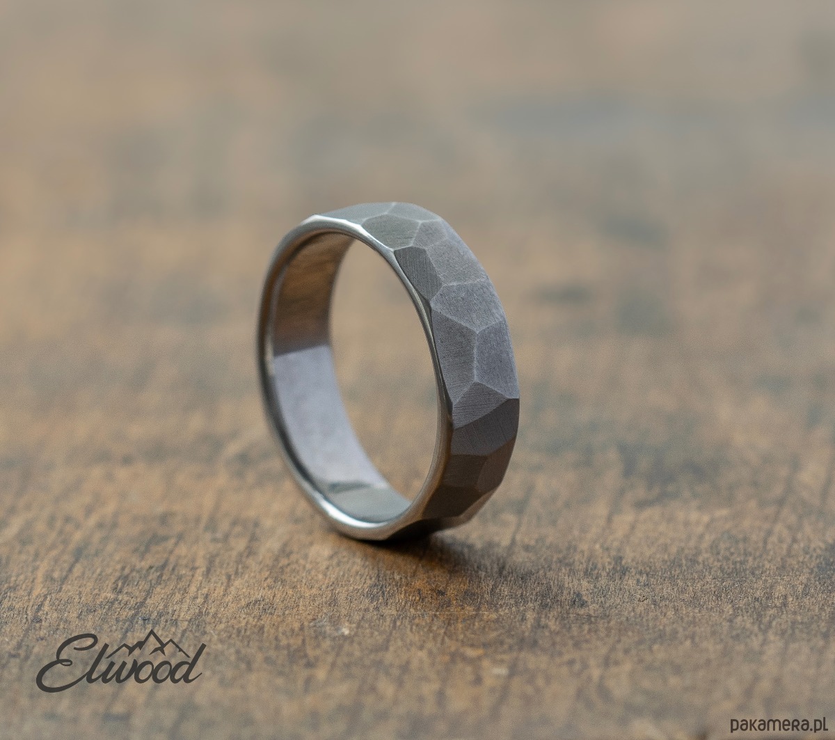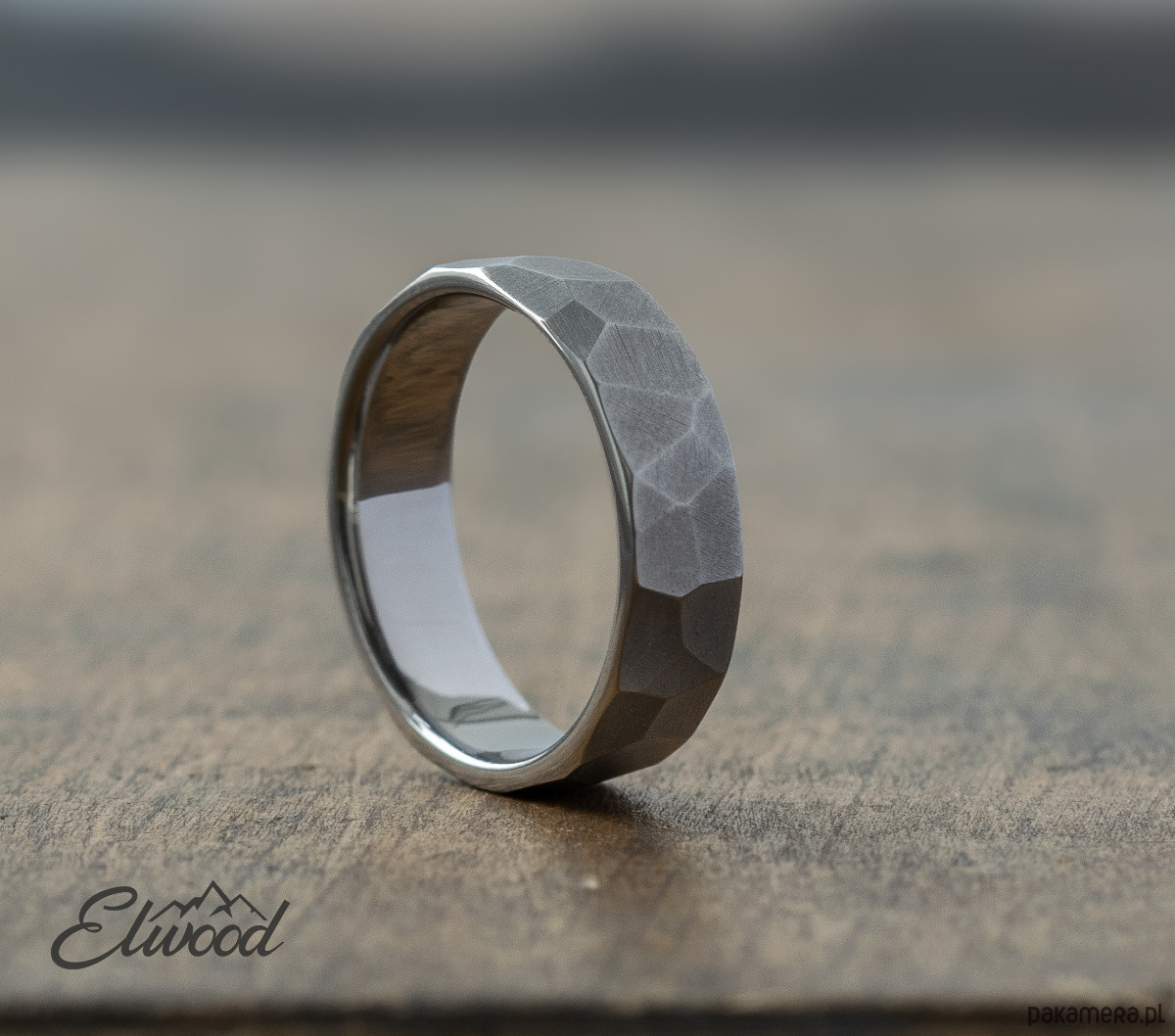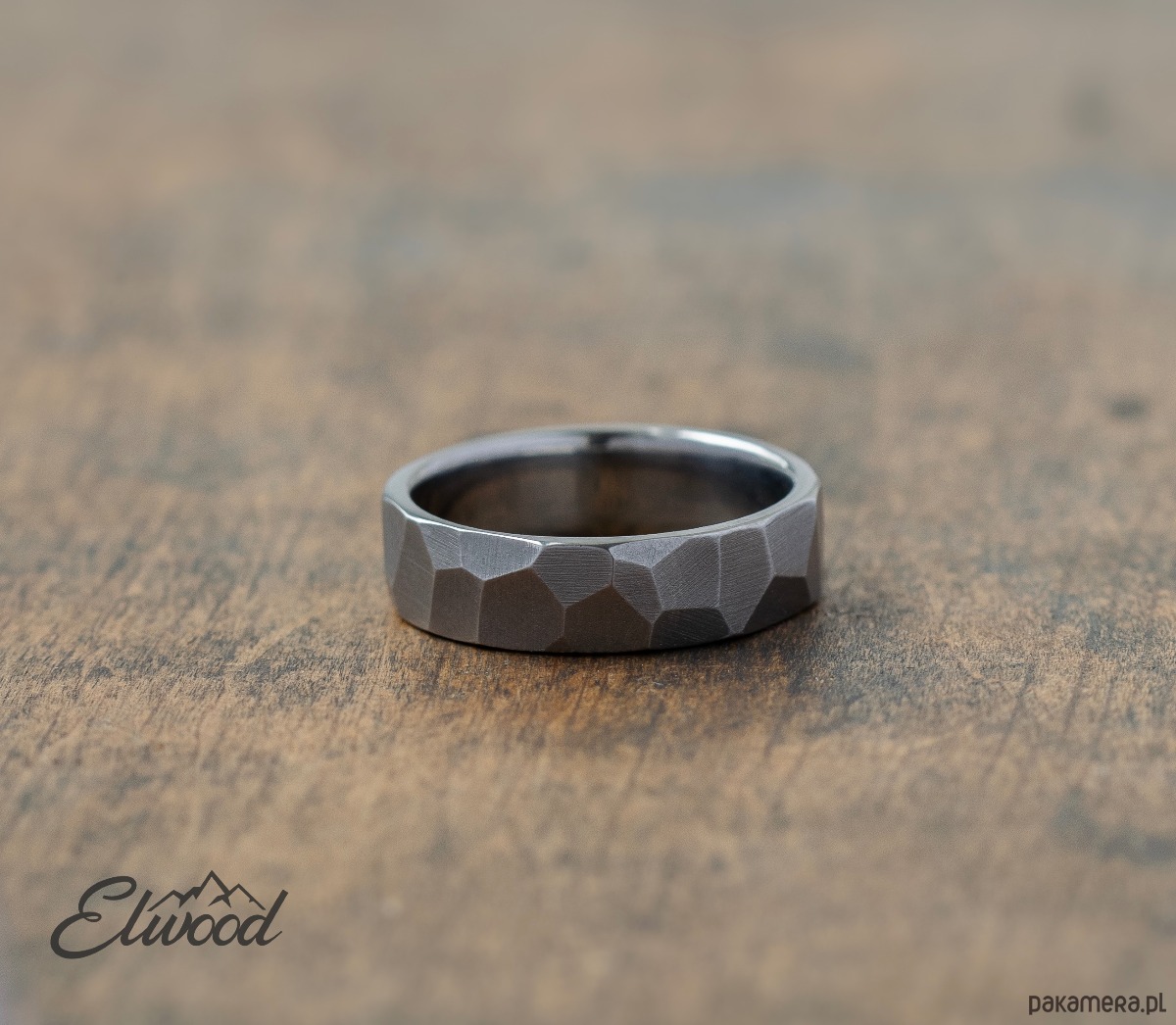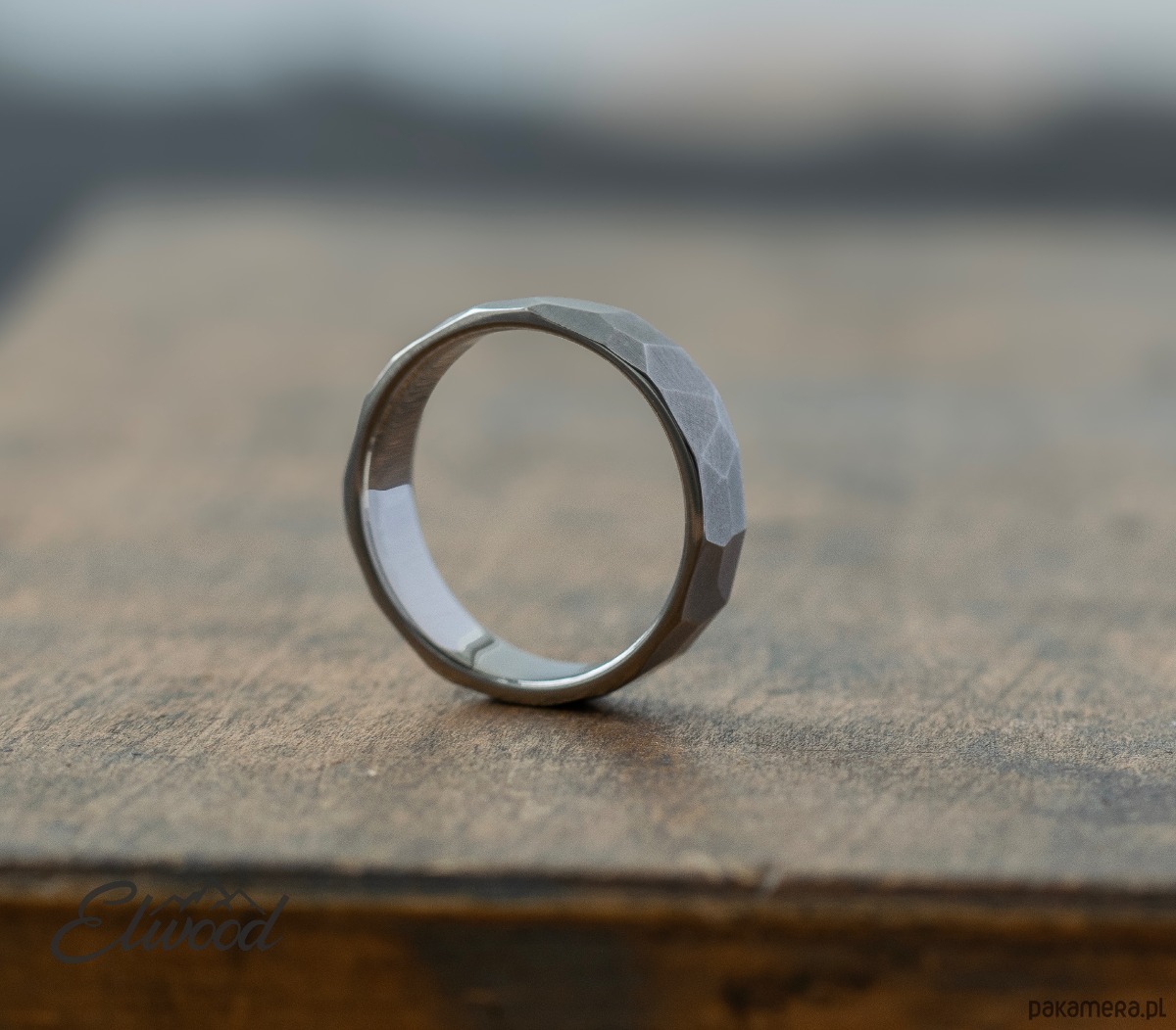 Obrączka z tytanu z unikatowym kształtem wykończenia.