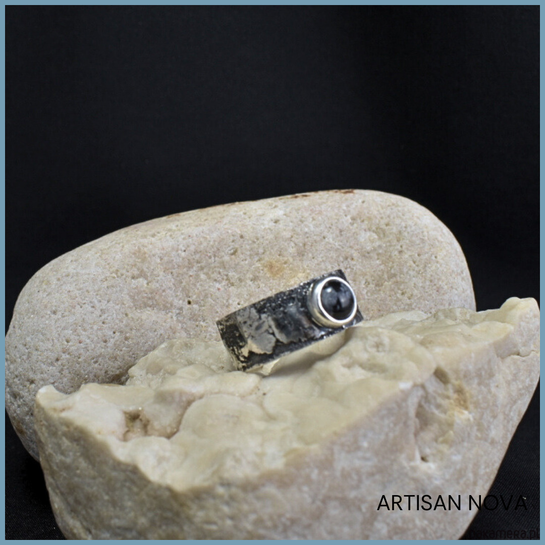 Pierścionek Obrączka ze Srebra i Obsydianu. Rozmiar 15