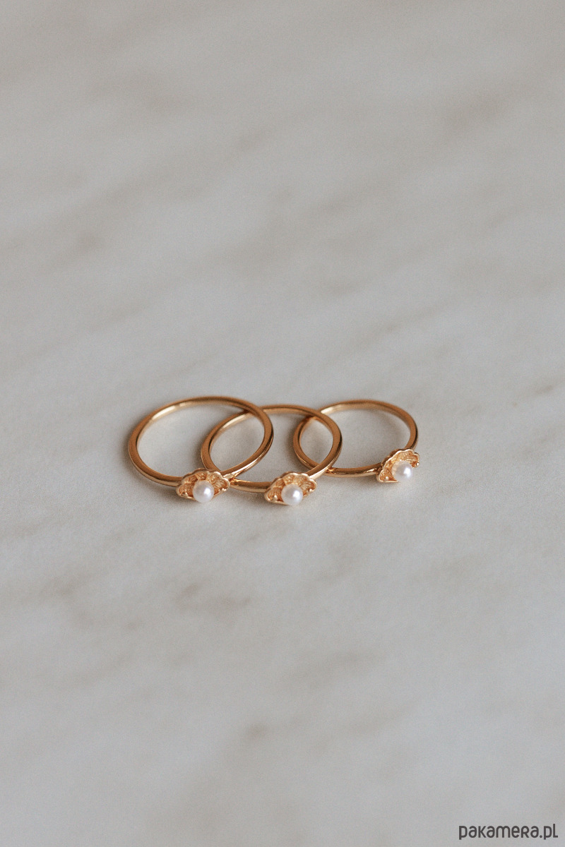 Ten pierścionek z perełką w kształcie muszli to połączenie elegancji, subtelności i nowoczesnego designu. Wykonany z wysokiej jakości srebra próby 925 i pozłacany 24-karatowym złotem, zachwyca swoim połyskiem i precyzją wykonania.