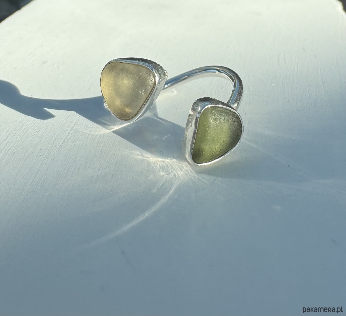 🌊 Srebrny pierścionek Open z autentycznym szkłem morskim