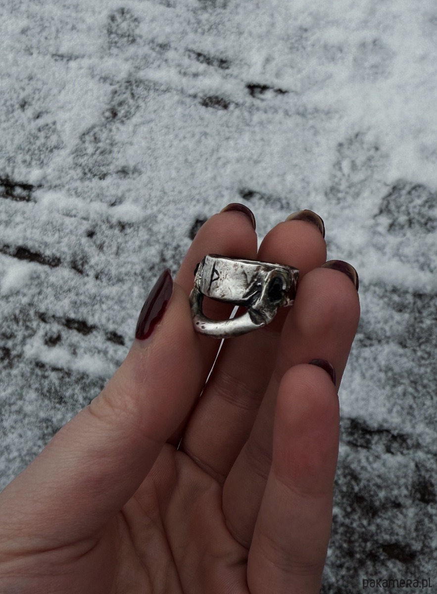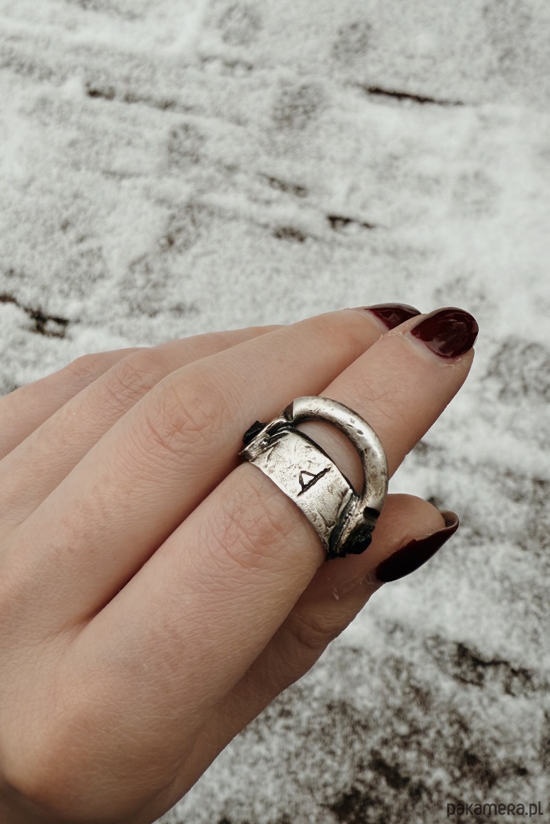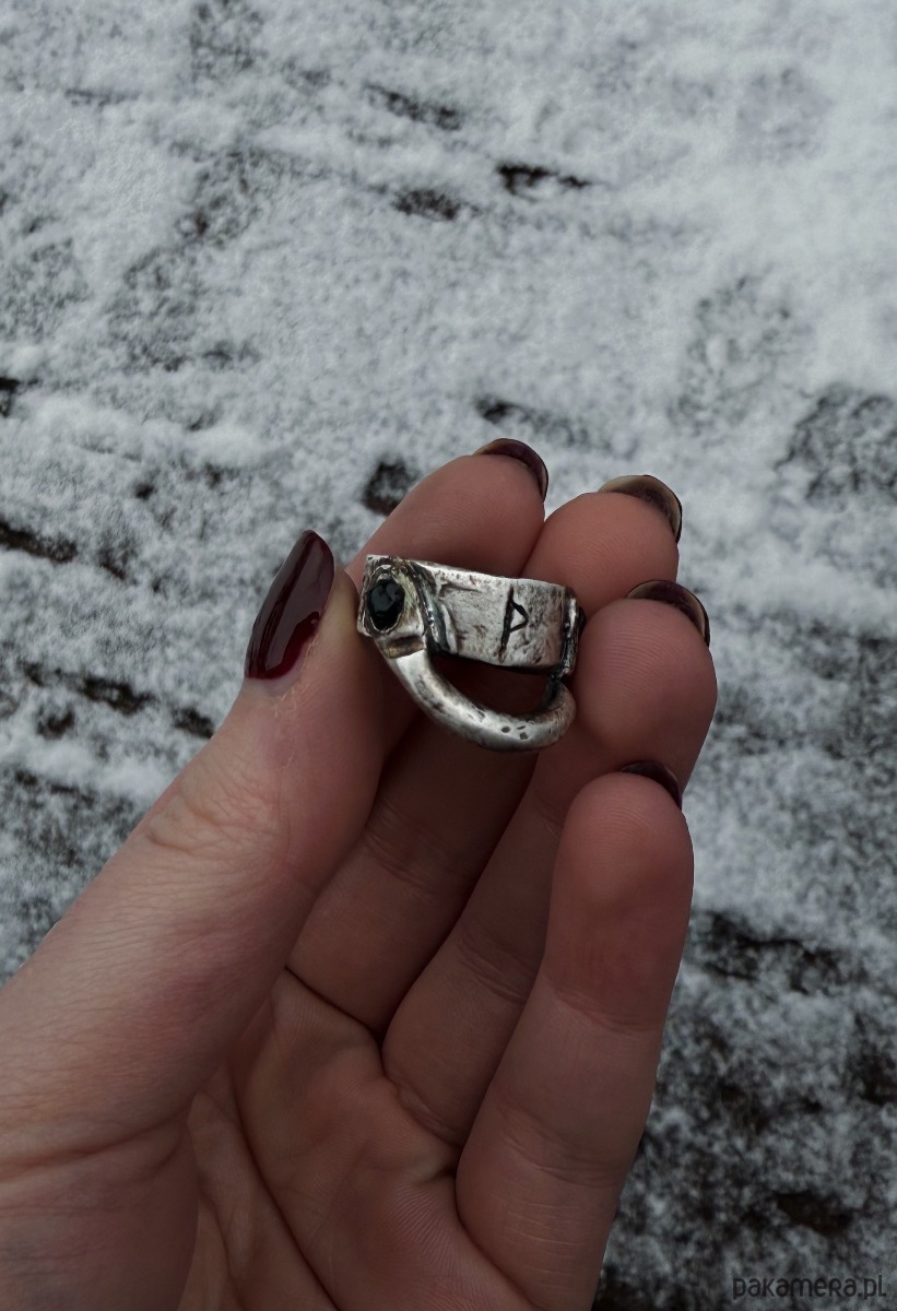 "Care" is a mystical artifact, unique in its simplicity and meaning. Hand-carved from silver and decorated with tourmalines on the sides, it exudes strength and mystery. At its center is engraved the Thurisaz rune, symbolizing strength, protection and the ability to overcome obstacles and overcome difficulties. Thurisaz is the rune of power, reminding us that inner strength and determination are the key to achieving goals and overcoming challenges.