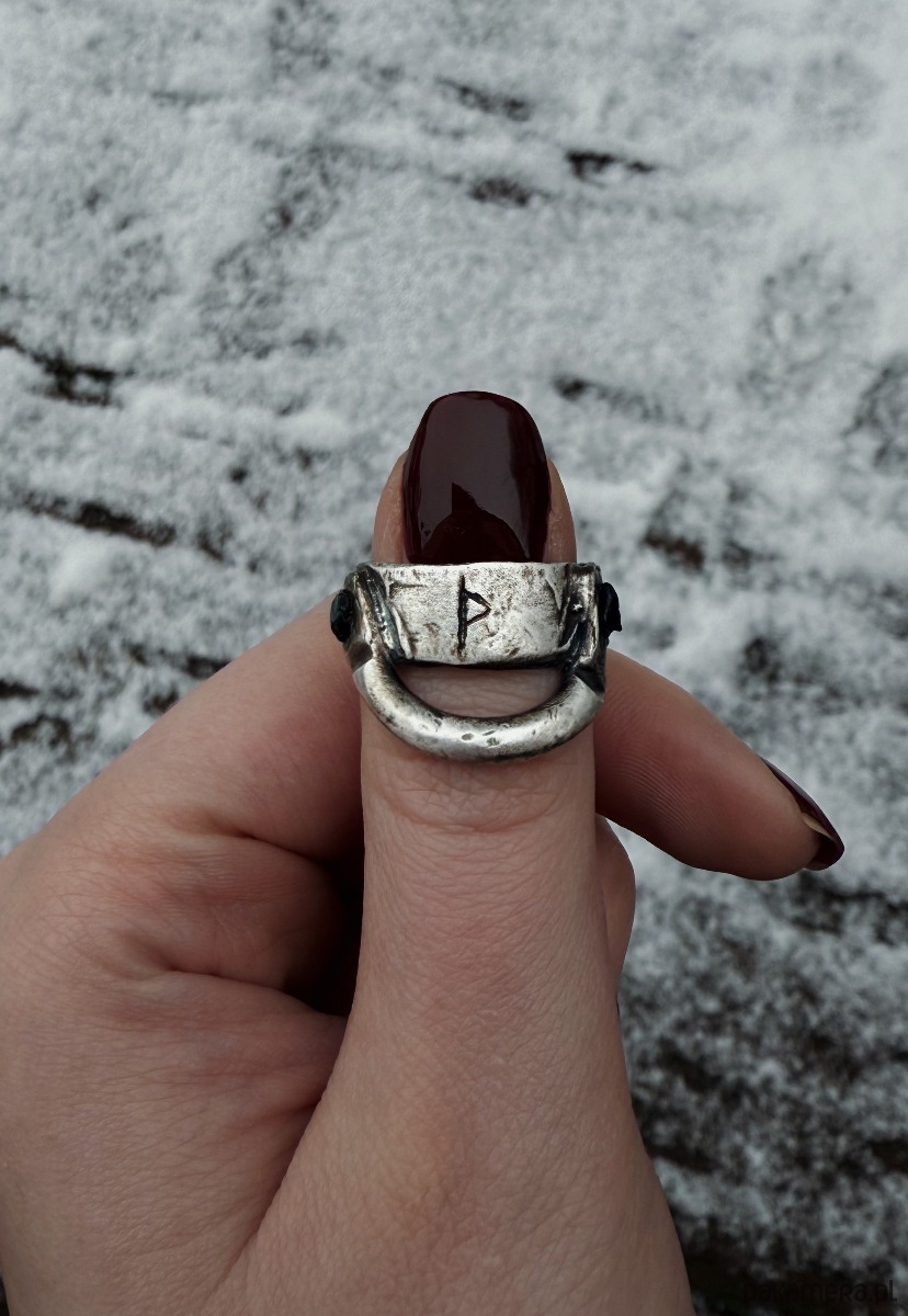"Opieka" to mistyczny artefakt, wyjątkowy w swojej prostocie i znaczeniu. Ręcznie rzeźbiony ze srebra, ozdobiony turmalinami po bokach, emanuje siłą i tajemnicą. Na jego środku wygrawerowana jest runa Thurisaz, symbolizująca siłę, ochronę oraz zdolność do przełamywania przeszkód i pokonywania trudności. Thurisaz to runa mocy, przypominająca nam, że wewnętrzna siła i determinacja są kluczem do osiągnięcia celów i pokonania wyzwań.