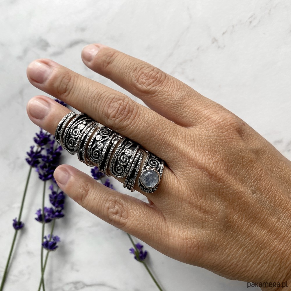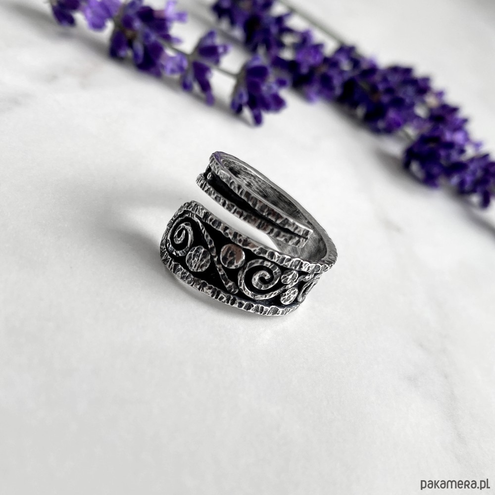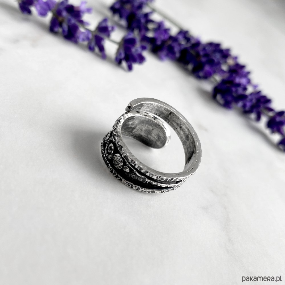 Regulowany, niezwykle efektowny pierścionek wykonany od podstaw ręcznie ze srebra próby 925