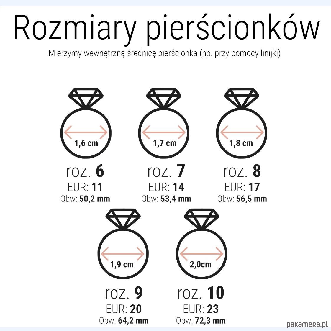 Rozmiar pierścionka wpisz w uwagach do zamówienia, bez podania rozmiaru wysyłamy domyślną wielkość: rozmiar 14