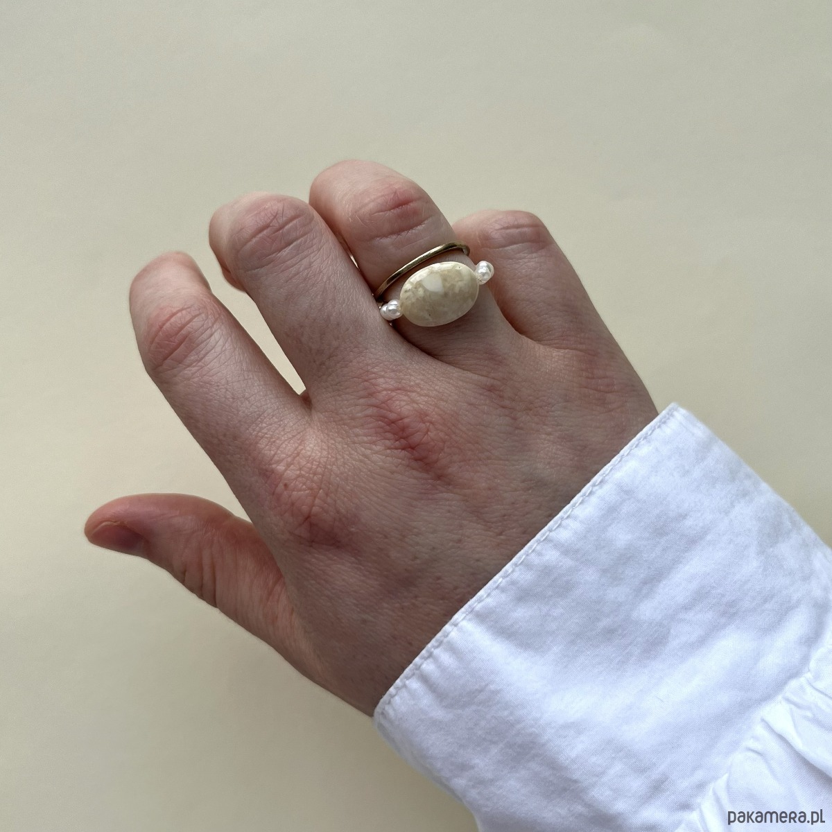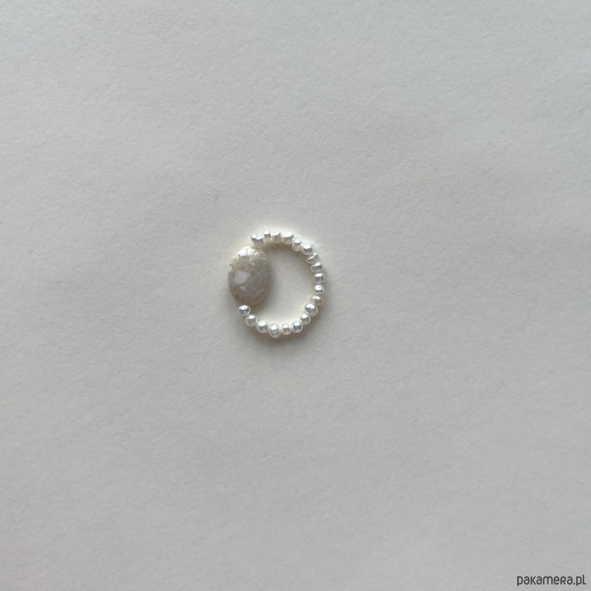 Minimalistyczny pierścionek z naturalnej perły i kamienia.