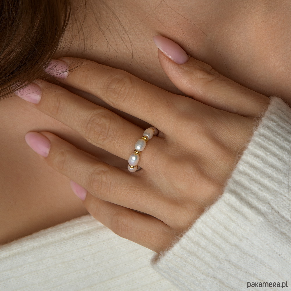 Pierścionek perły naturalne (na elastycznej gumce)- srebro 925 pozłacane