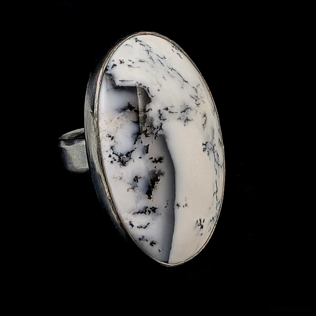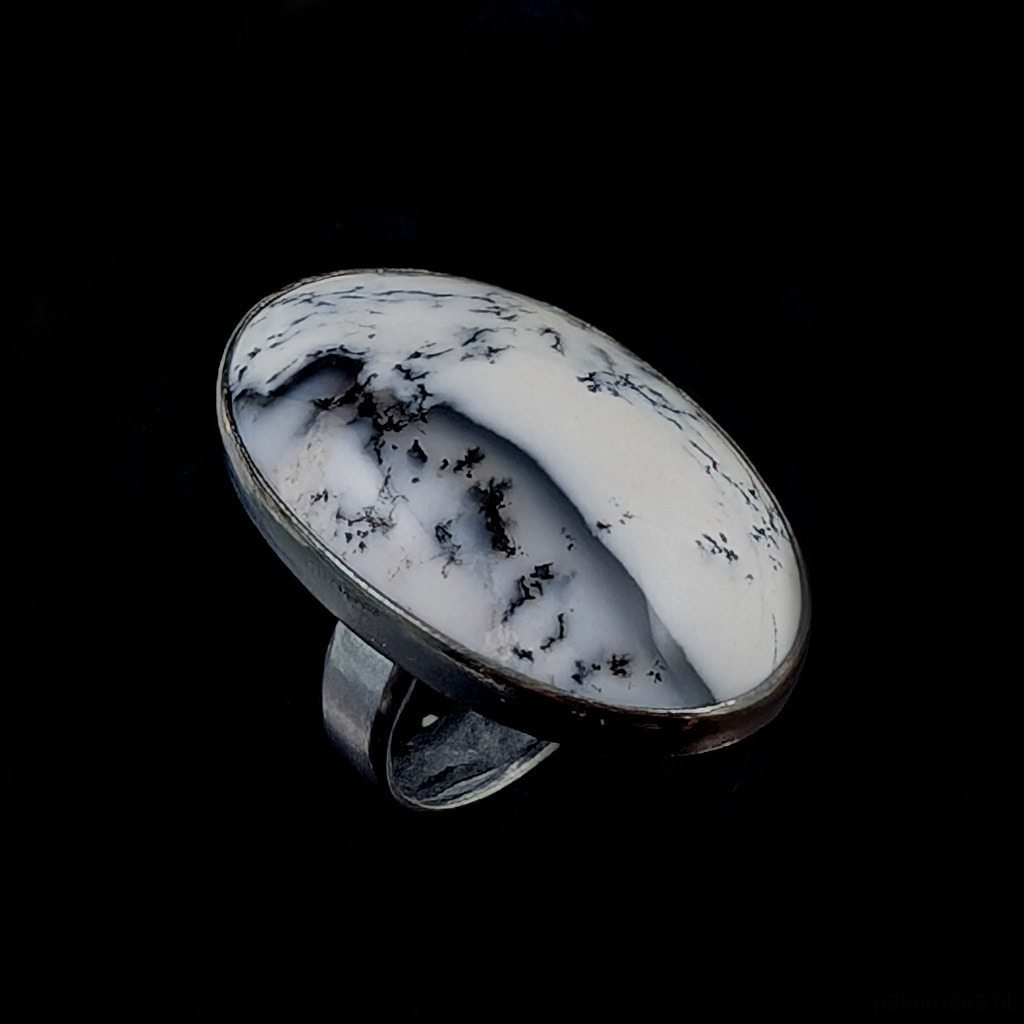 Pierścionek pierwszy śnieg- dendrytowy agat