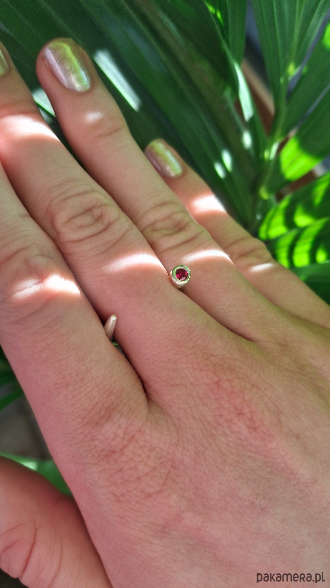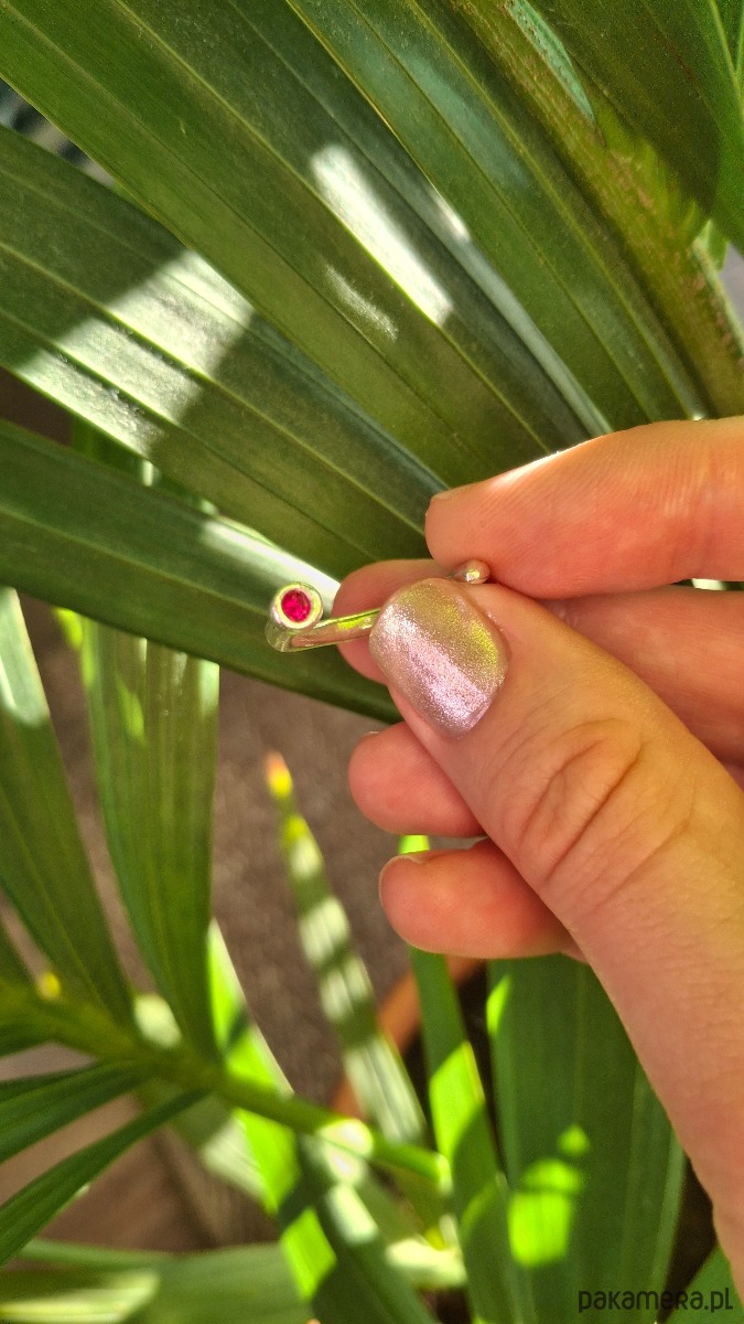 Pierścionek z kolekcji Spadające gwiazdy to połączenie minimalistycznej formy i szlachetnego blasku. Srebro podkreśla głębie światła zamkniętego w rubinowej cyrkonii (średnica 3mm). Idealne dla osób ceniących elegancje i oryginalność.