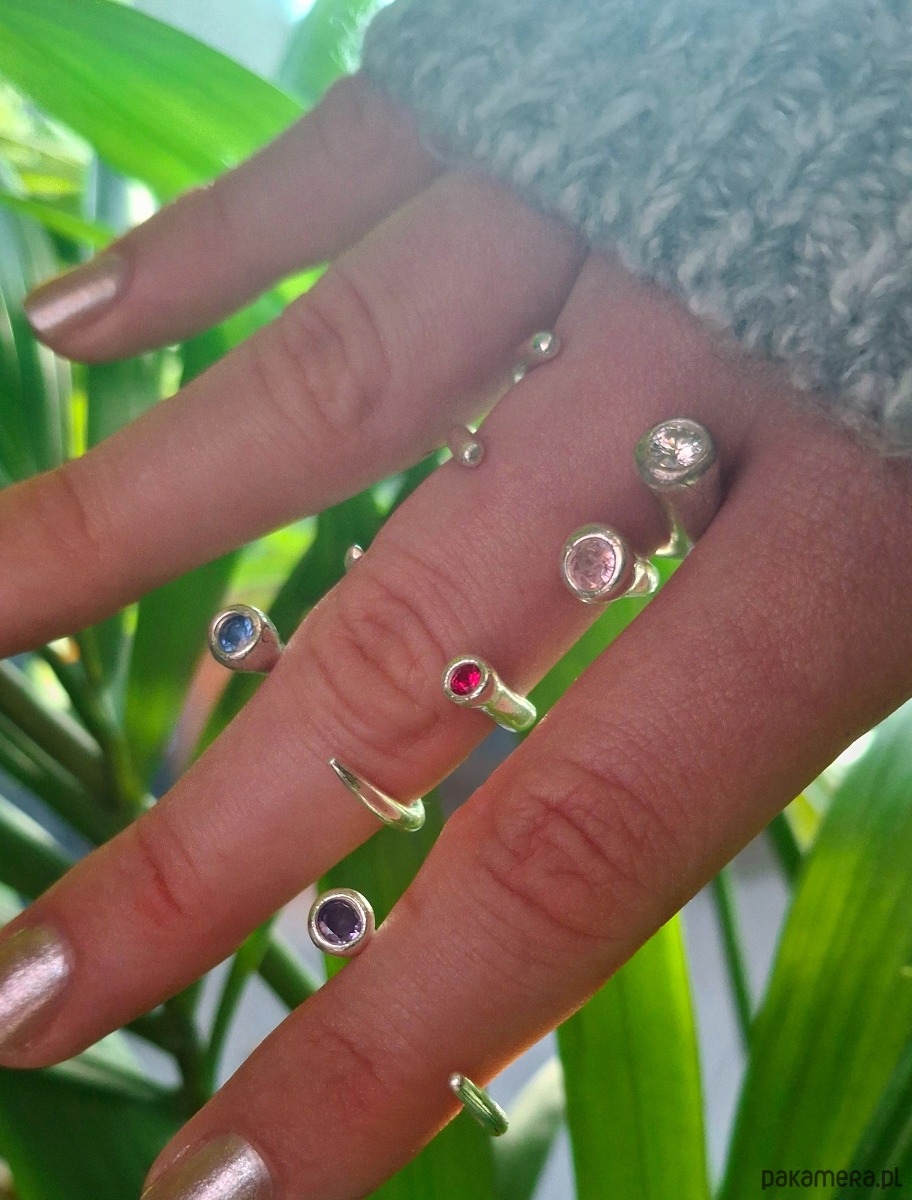 Na ostatnim zdjęciu przedstawione są inne wersje pierścionka Spadająca gwiazda, różniące się kolorem (biały, niebieski, fioletowy, lawendowy, pastelowy róż) i wielkością kamienia (3 lub 4mm). Jeśli interesuje Cię inny wariant niż dostępny w tej ofercie, napisz do mnie wiadomość, a przygotuję osobną aukcję.