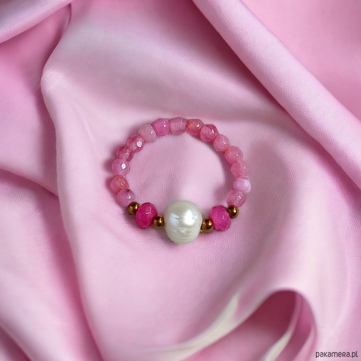 Pierścionek : PINK vol.2 : perła, agat, jadeit