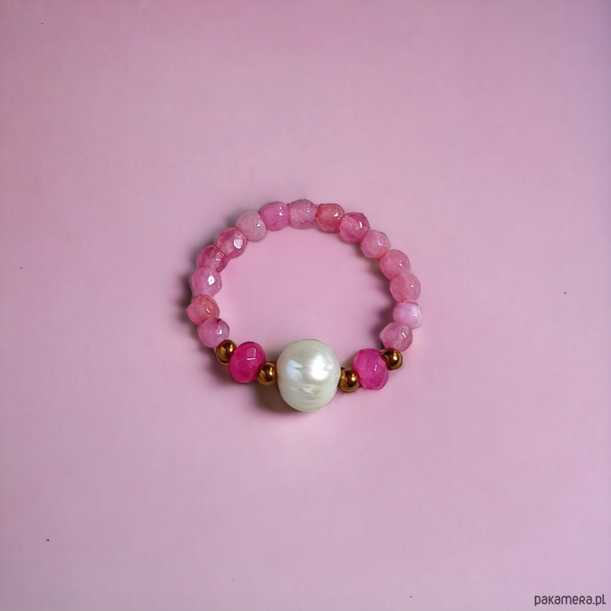 Pierścionek : PINK vol.2 : perła, agat, jadeit