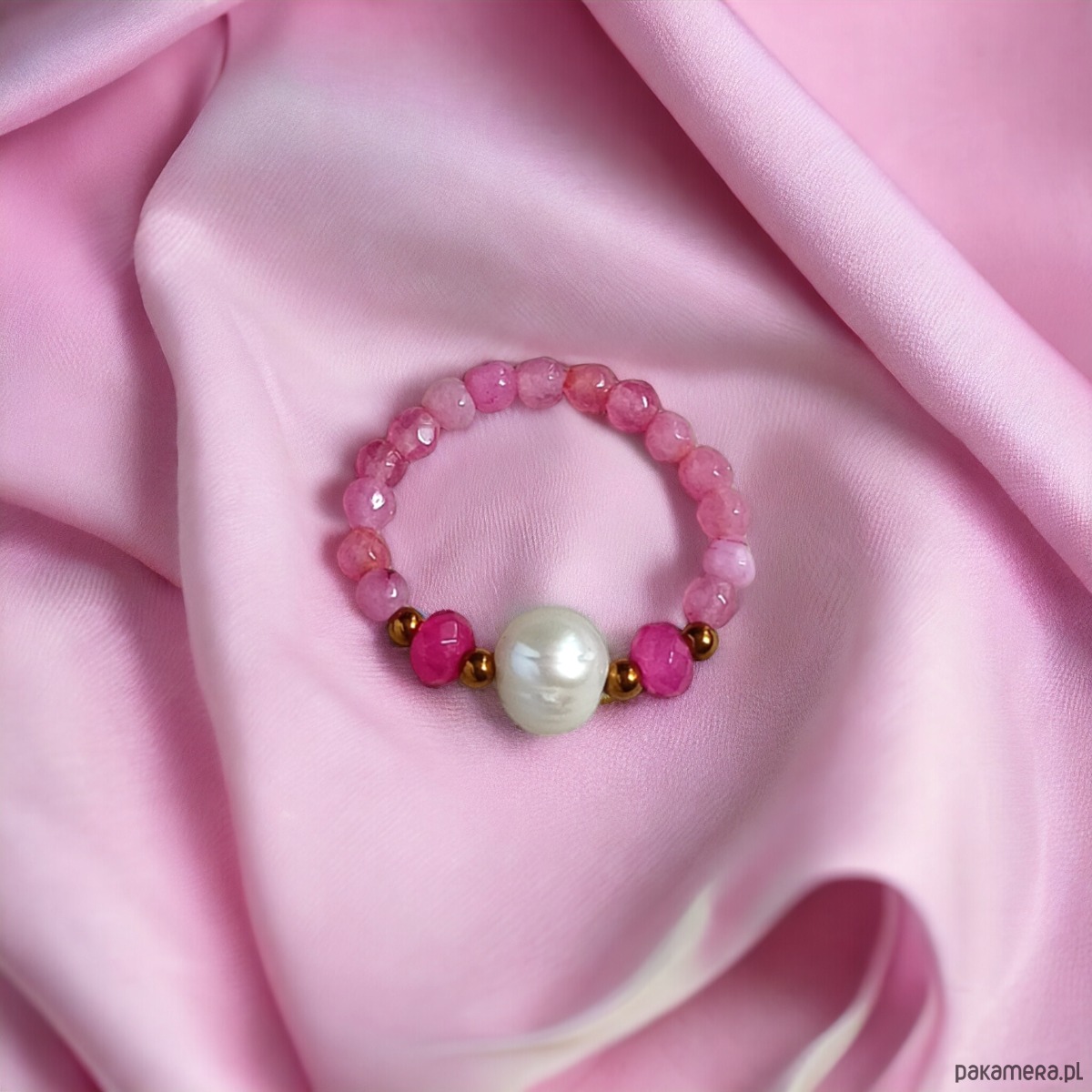 Pierścionek : PINK vol.2 : perła, agat, jadeit