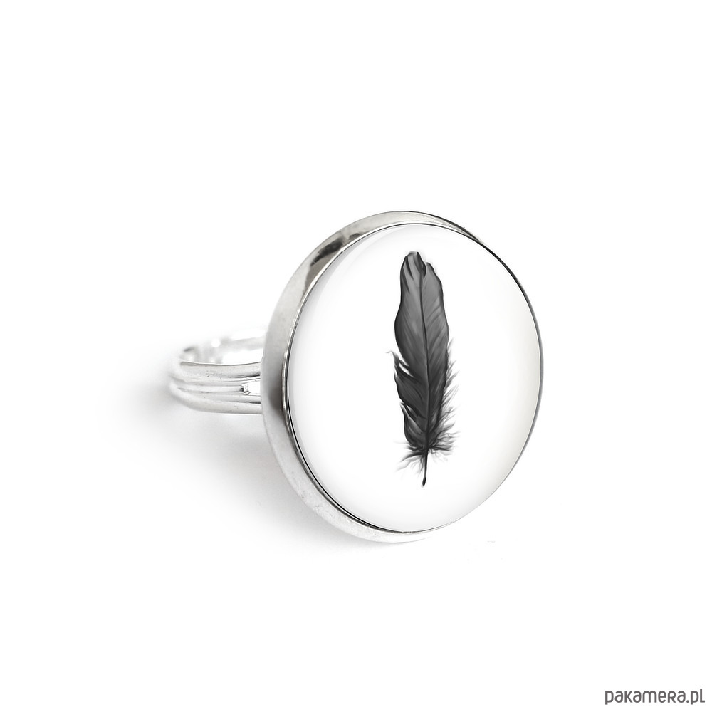 Grafika ukryta w prostym pierścieniu pod osłoną przeźroczystego półokrągłego szkiełka.