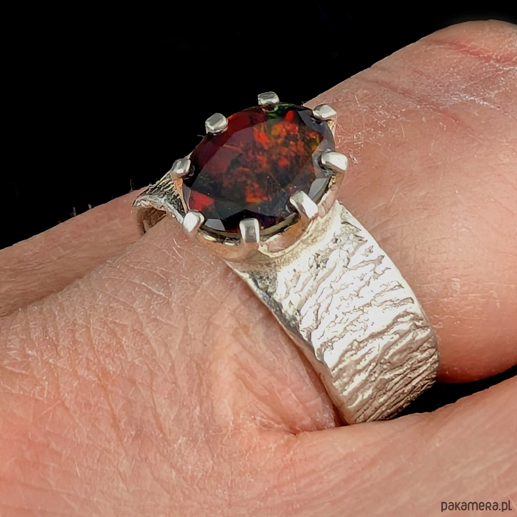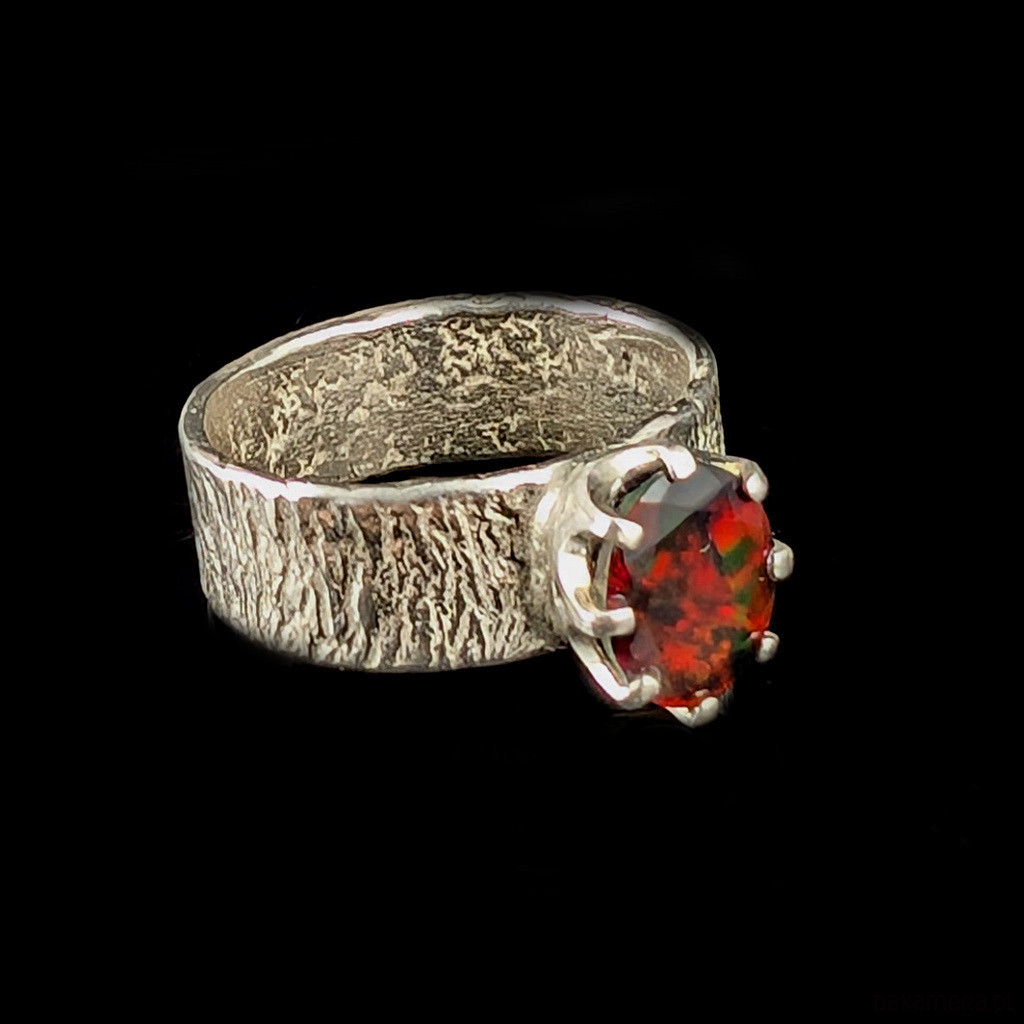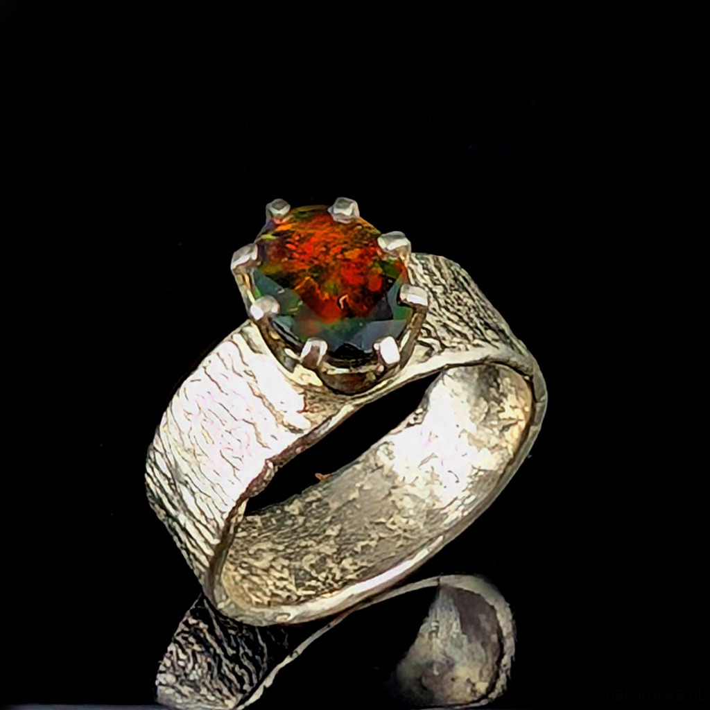 Pierścionek płonący czarny opal
