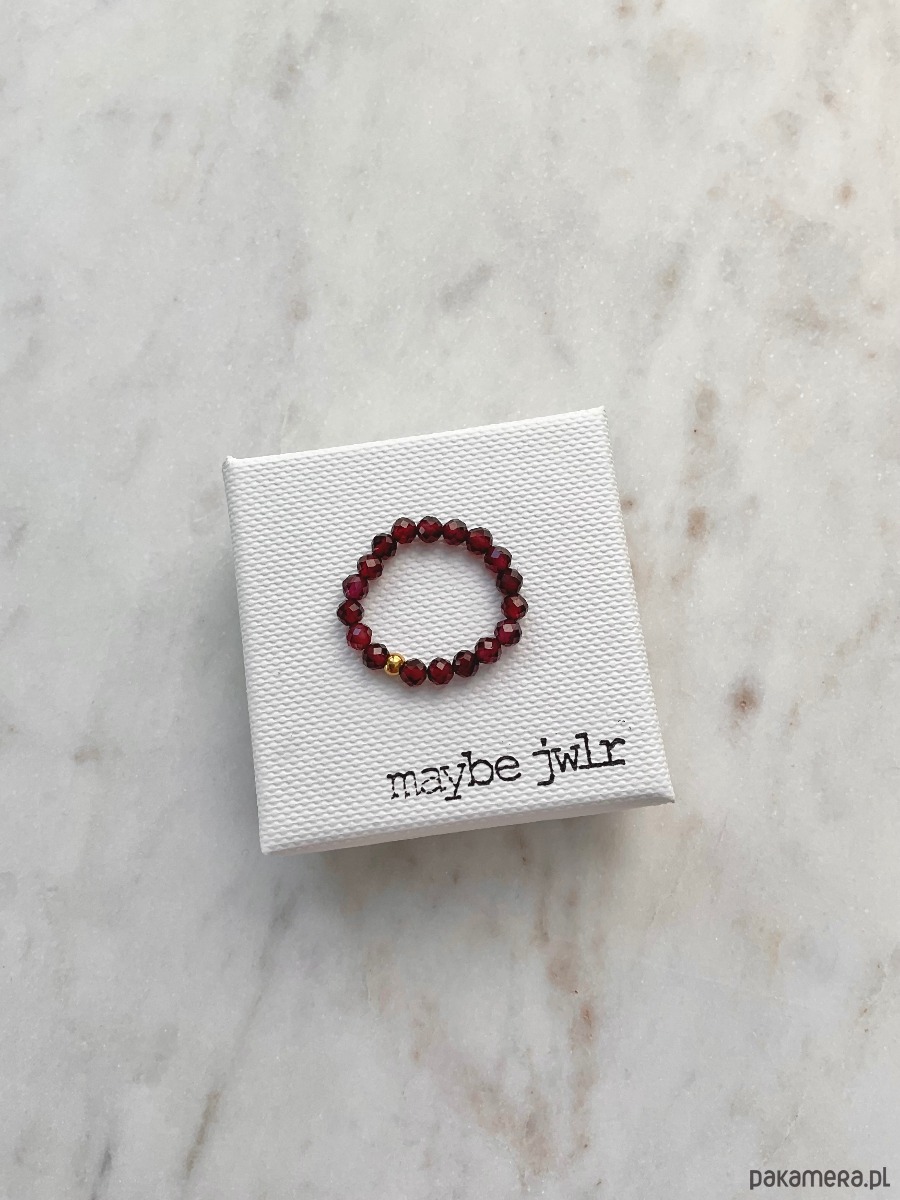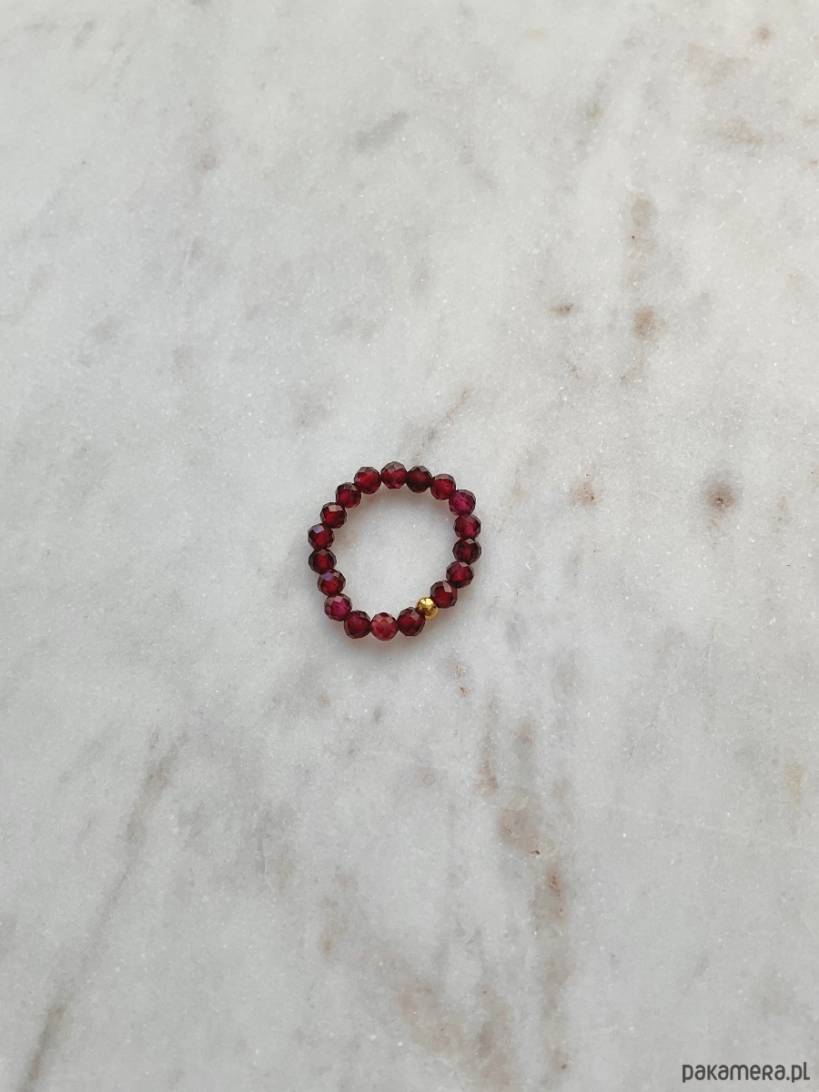 Pierścionek jest w całości zrobiony z kamieni naturalnych, a zakończony jest pozłoconą kuleczką ze