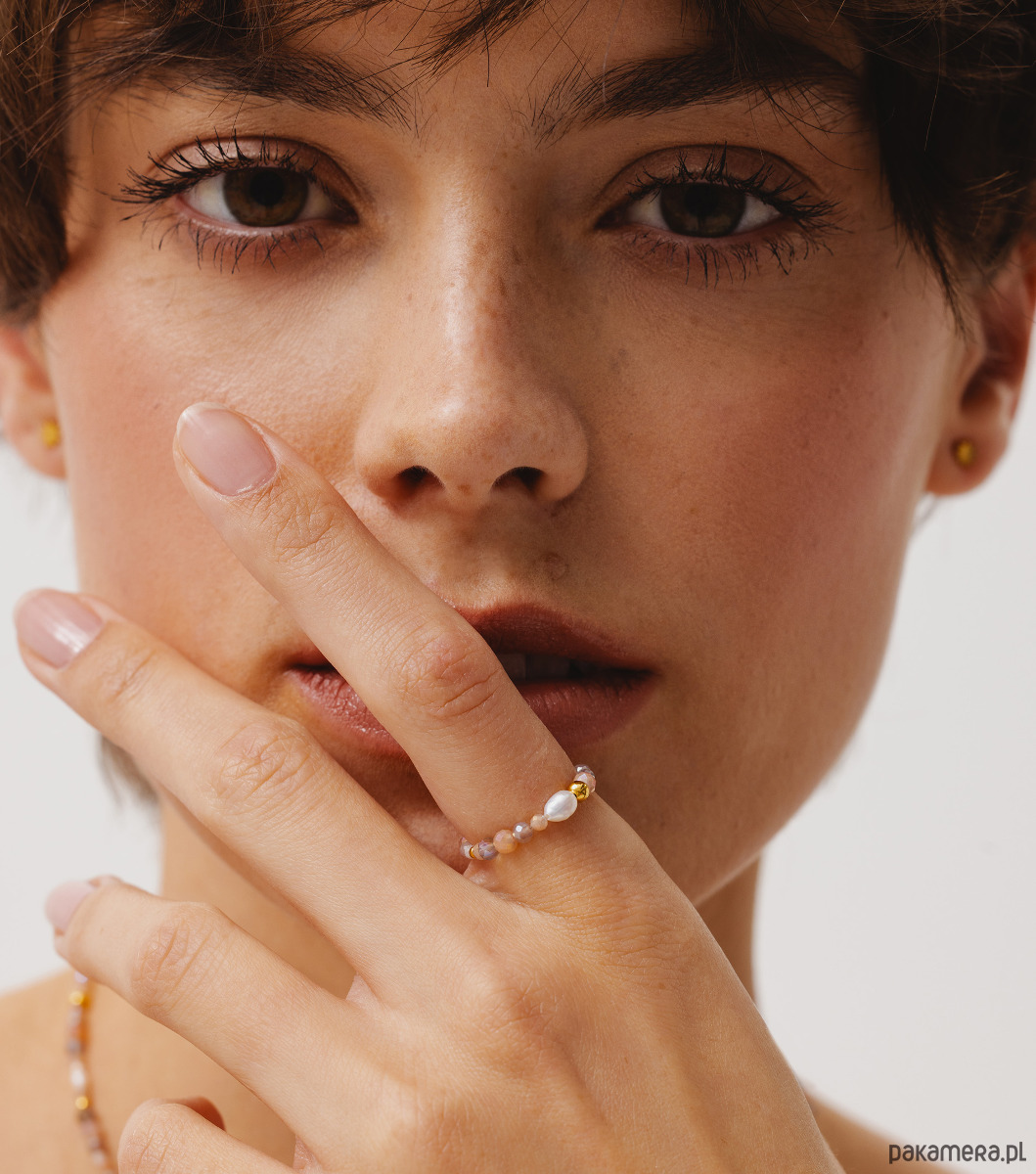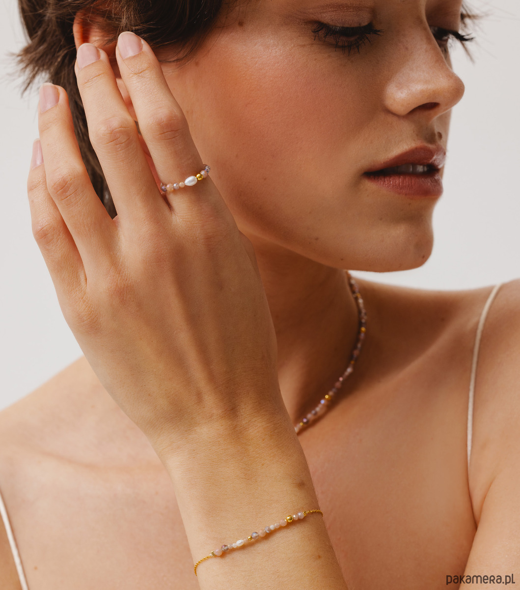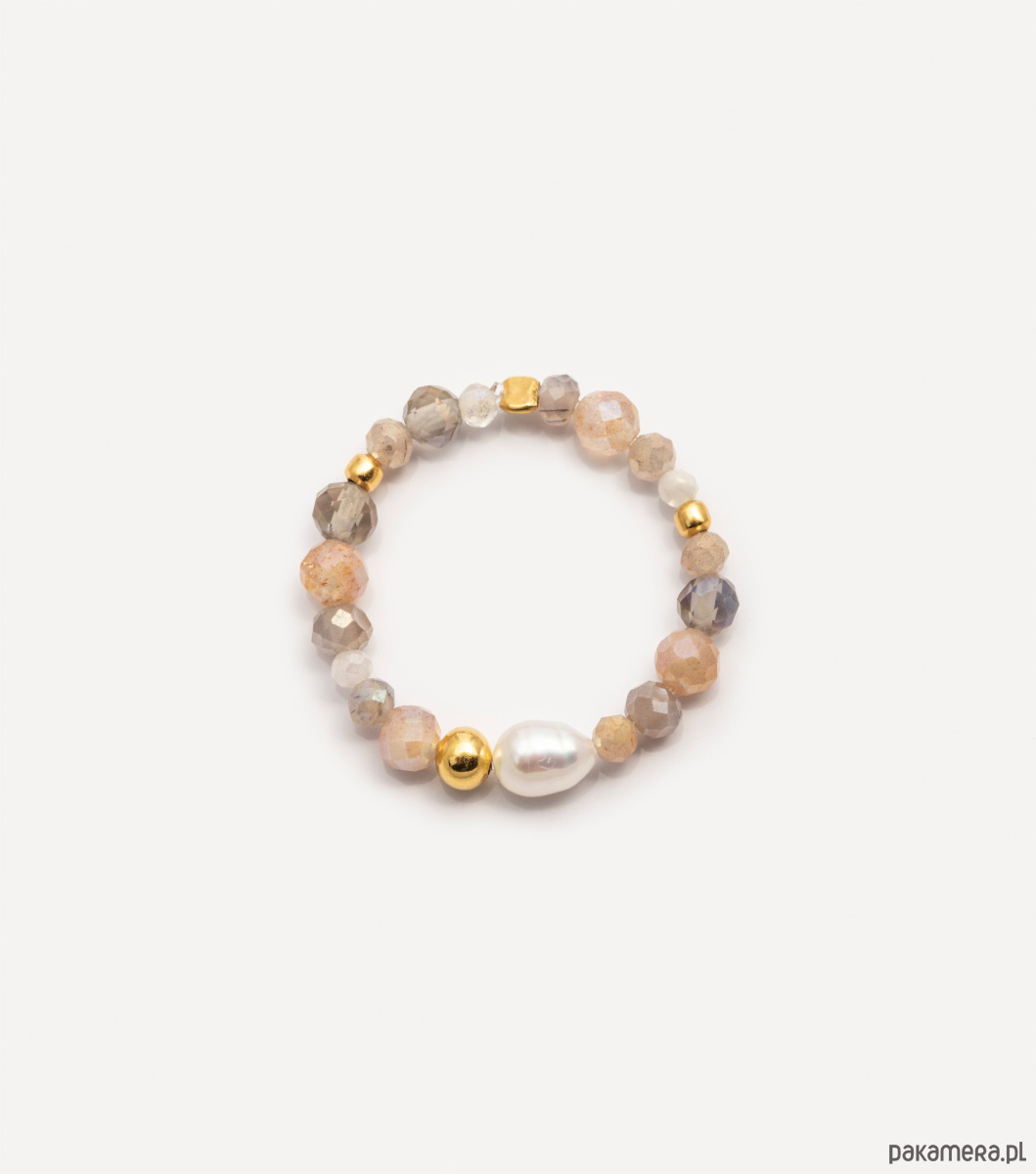 Pierścionek pozłacany z jasnymi kamieniami naturalnymi