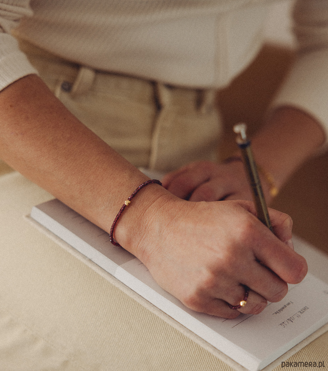 Małe rzeczy potrafią nieść duże znaczenie. Pierścionek z granatami o unikatowym, opalizującym szlifie, symbolizuje siłę, odwagę i wierność sobie. Dopełnieniem jest delikatne serduszko – subtelny znak miłości i bliskości, który sprawia, że ta biżuteria staje się czymś więcej niż ozdobą. Lekki i komfortowy w noszeniu, miękko układa się na palcu, stając się wygodnym elementem codziennych stylizacji
