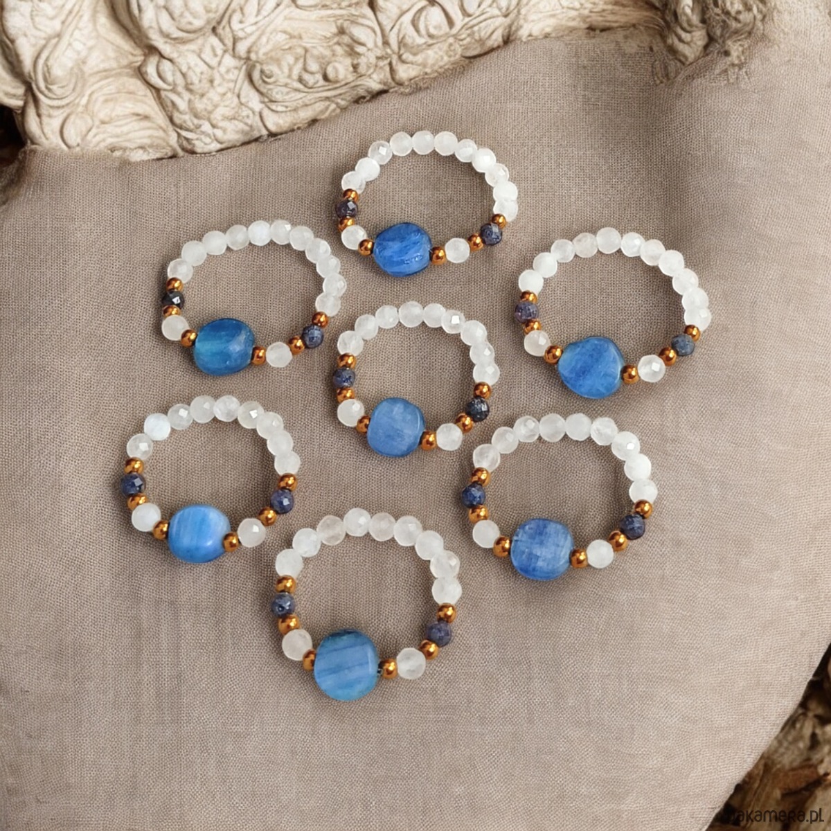 Pierścionek PREMIUM : kyanit, szafir, kamień księżycowy : PIERŚCIONEK