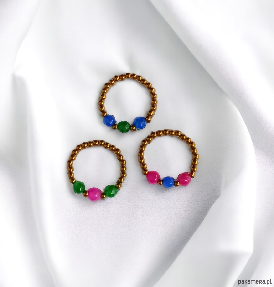 3x uroczy, delikatny pierścionek na solidnej gumce jubilerskiej.