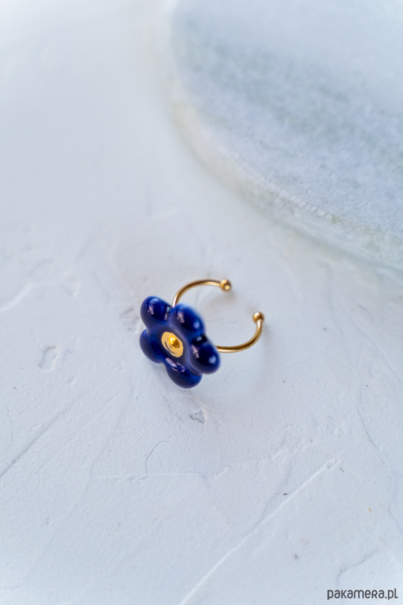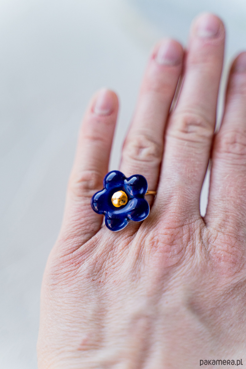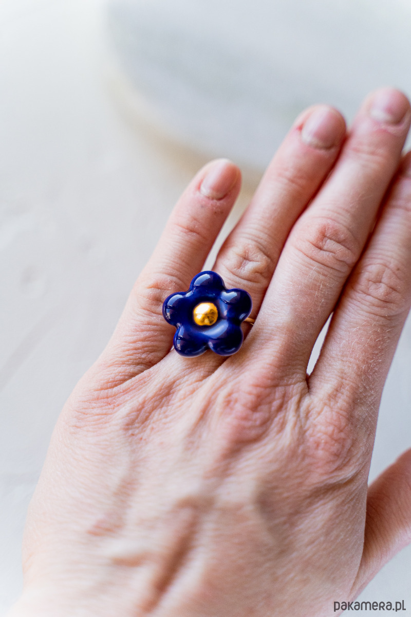 Ten pierścionek powstał z najwyższej jakości porcelany Parian, a szkliwo i złoto naszkliwne nadają mu dodatkowego połysku i blasku.