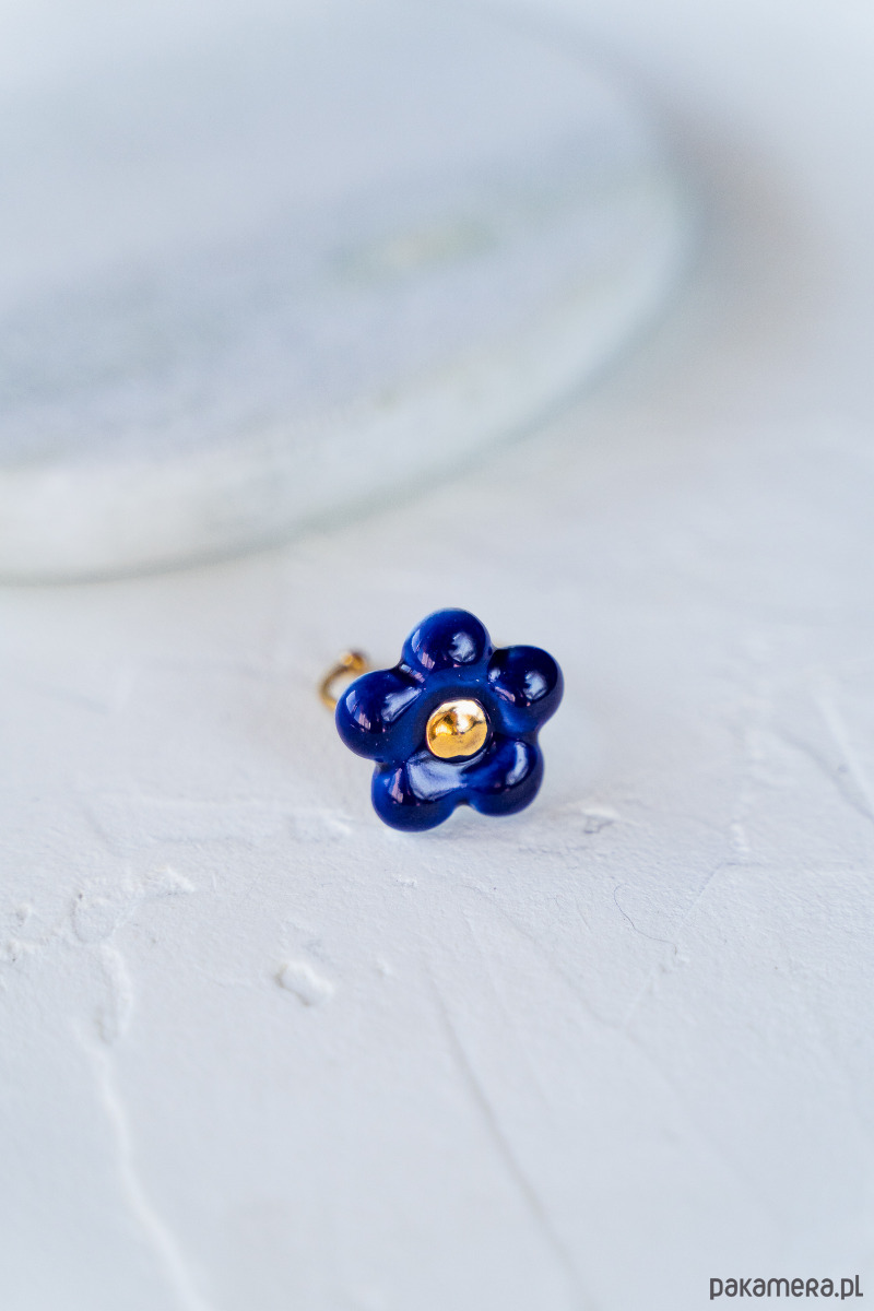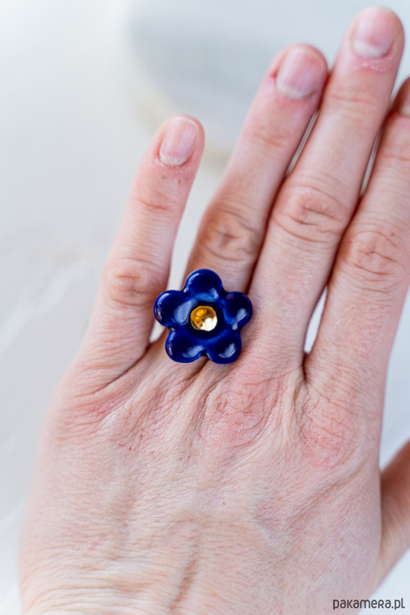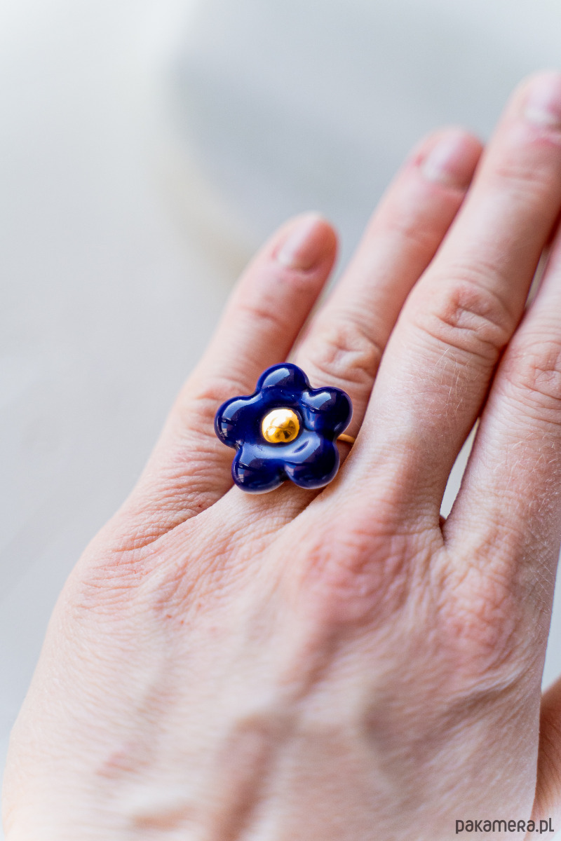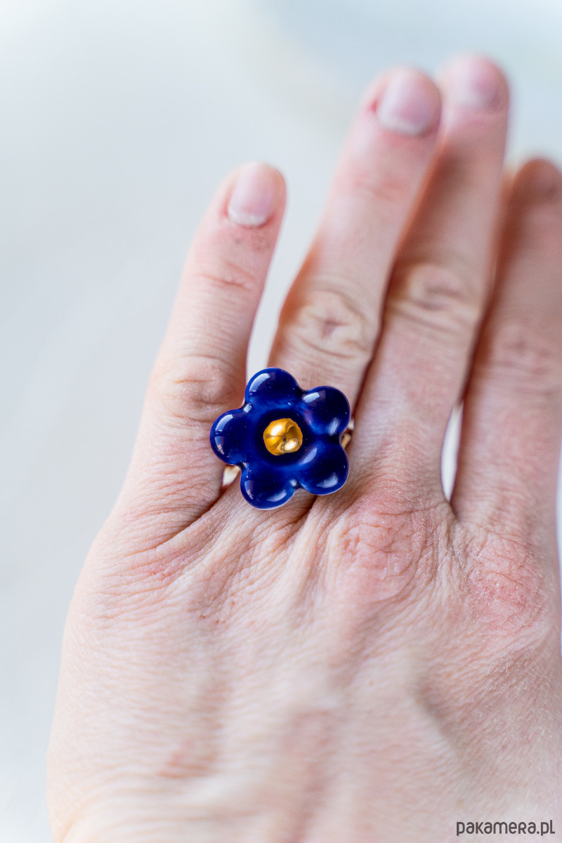 Ten pierścionek powstał z najwyższej jakości porcelany Parian, a szkliwo i złoto naszkliwne nadają mu dodatkowego połysku i blasku.