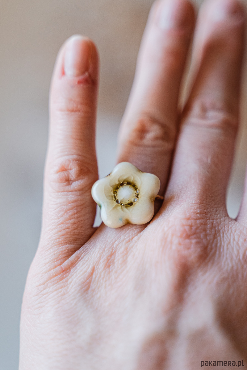 rozmiar: baza pierścionków jest regulowana, dzięki czemu pierścionki są uniwersalne