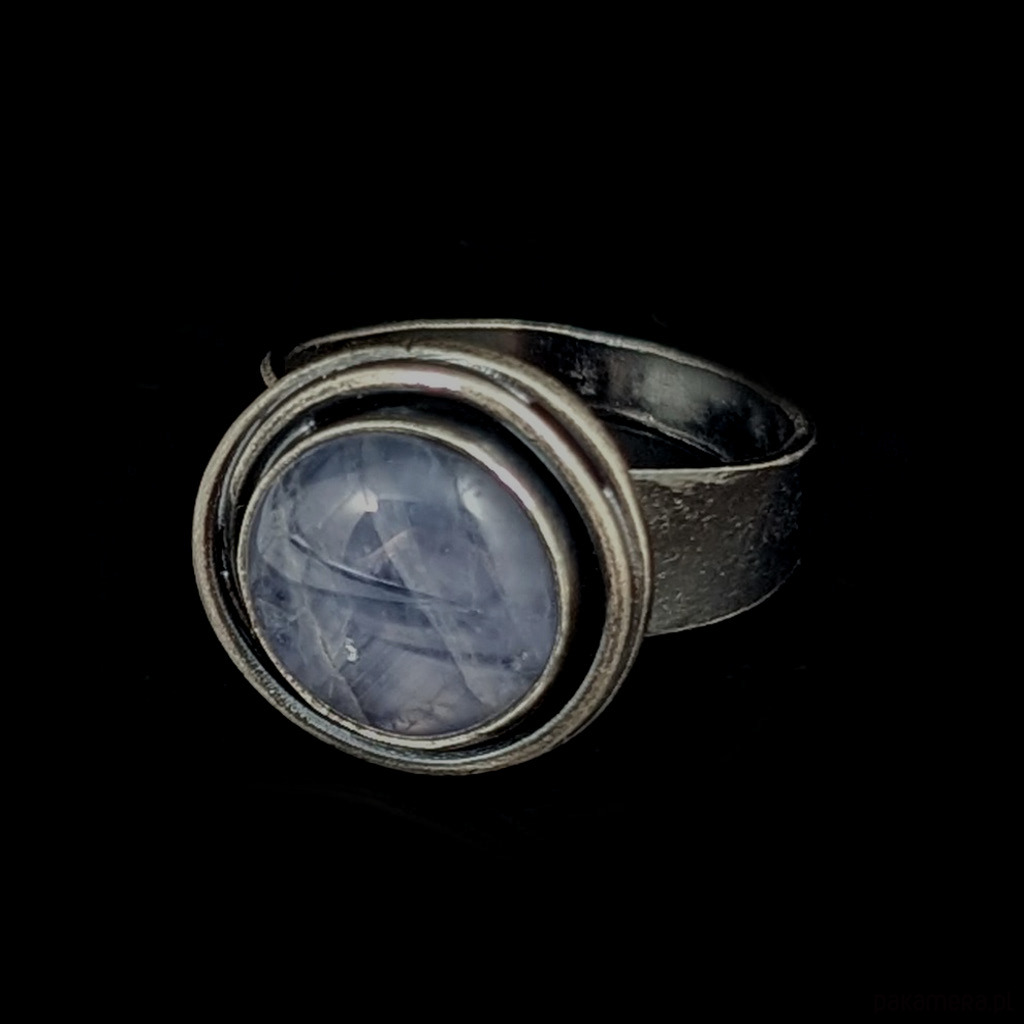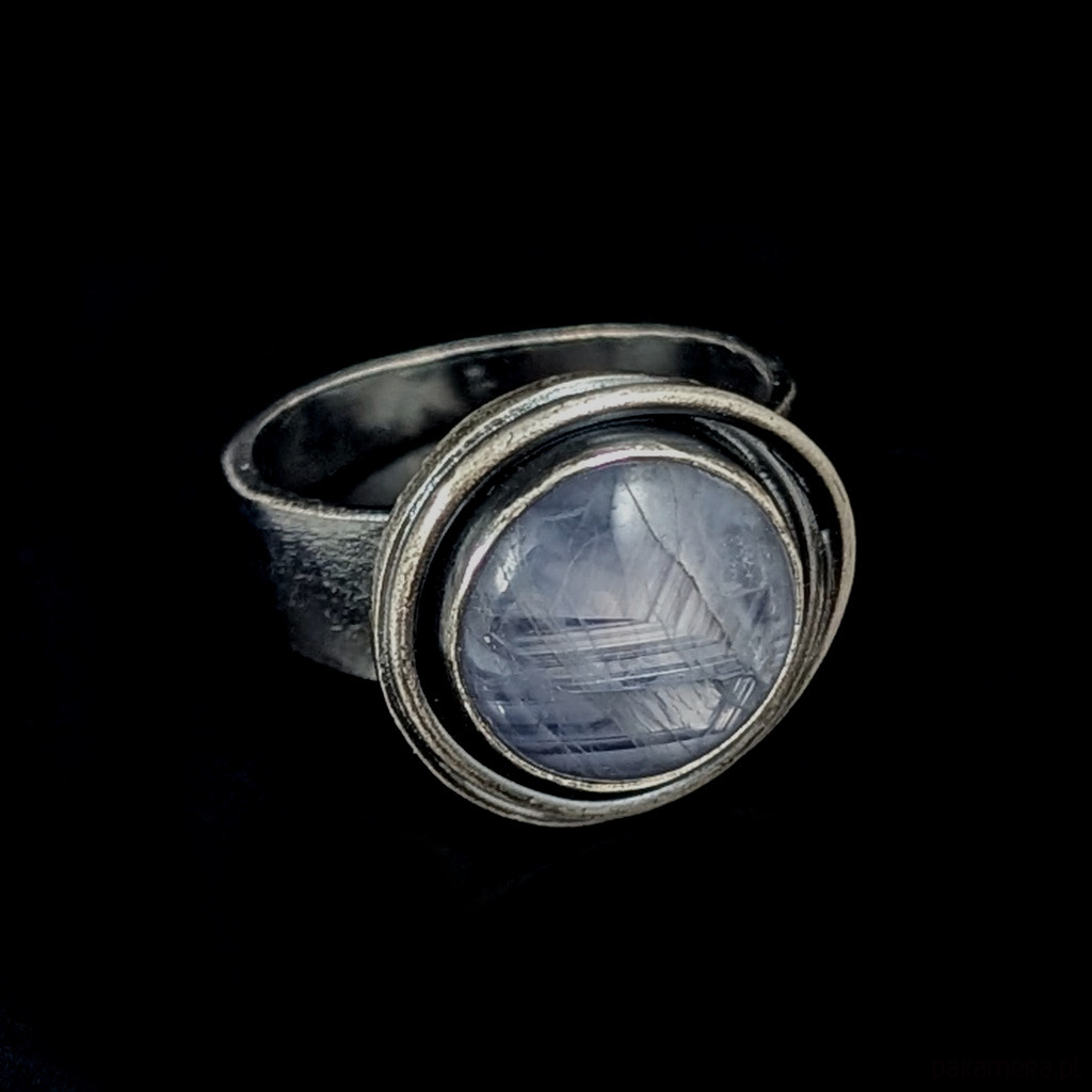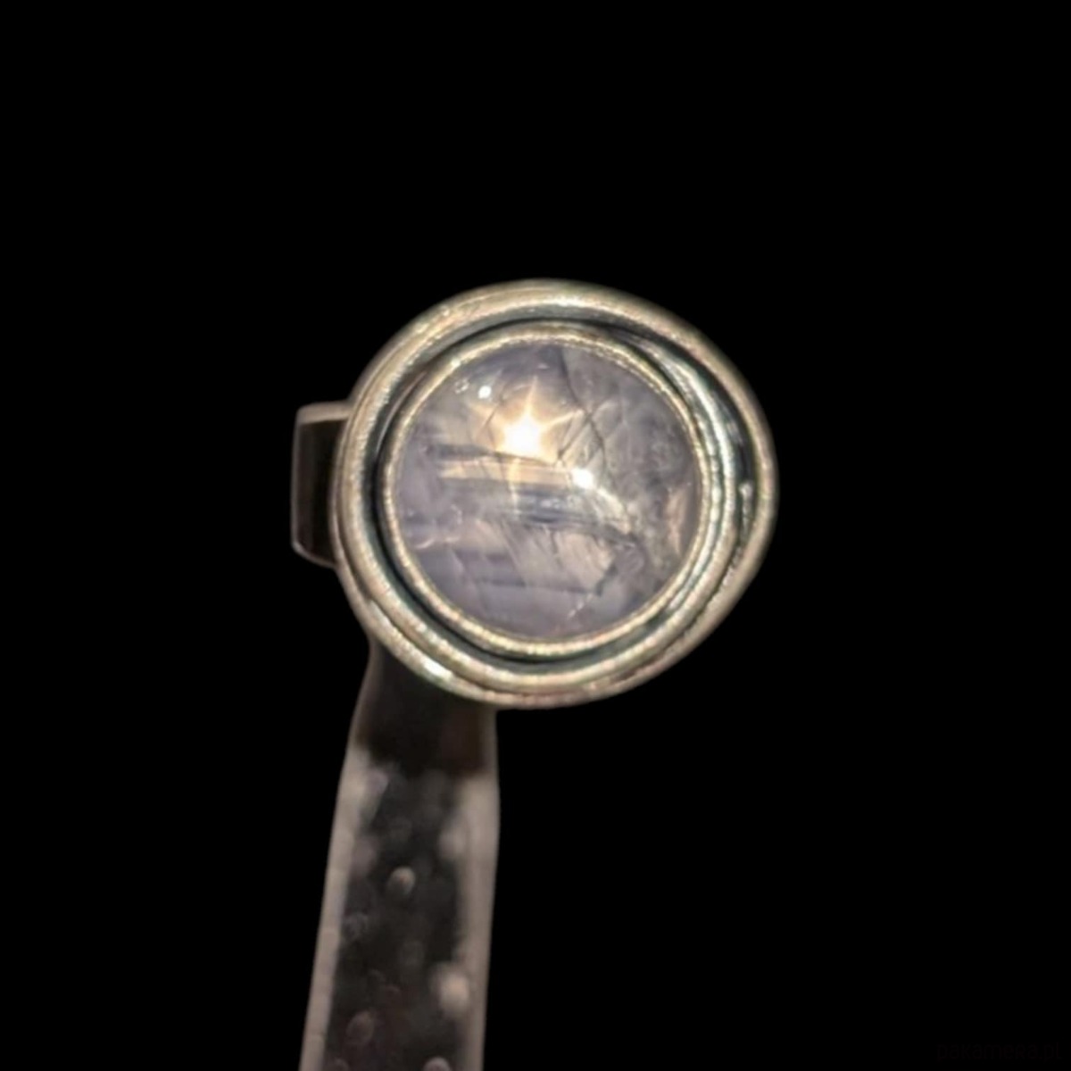 Szlachetny, elegancki pierścień z oprawionym w oksydowane srebro pr. 925 okazem pięknego szafiru gwiaździstego. Subtelna gwiazda pojawia się na szarej tafli wraz ze źródłem światła i pewłnym słońcu. Wymiary oprawy 16 x 15 mm. Waga 6,6 g. Rozmiar jubilerski 17 bez możliwości zmiany, obrączka zwężana ma max 6 mm szerokości. Pierścionek zostanie wysłany w ozdobnym pudełeczku.