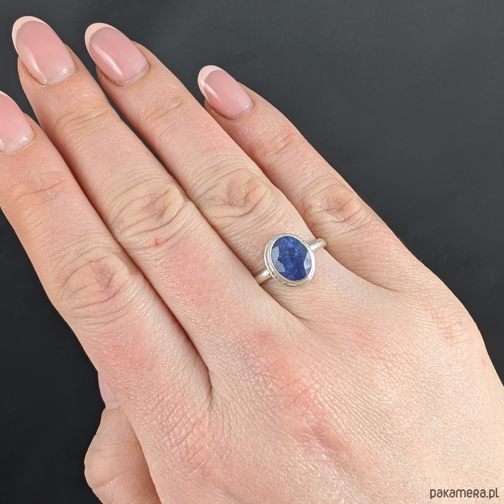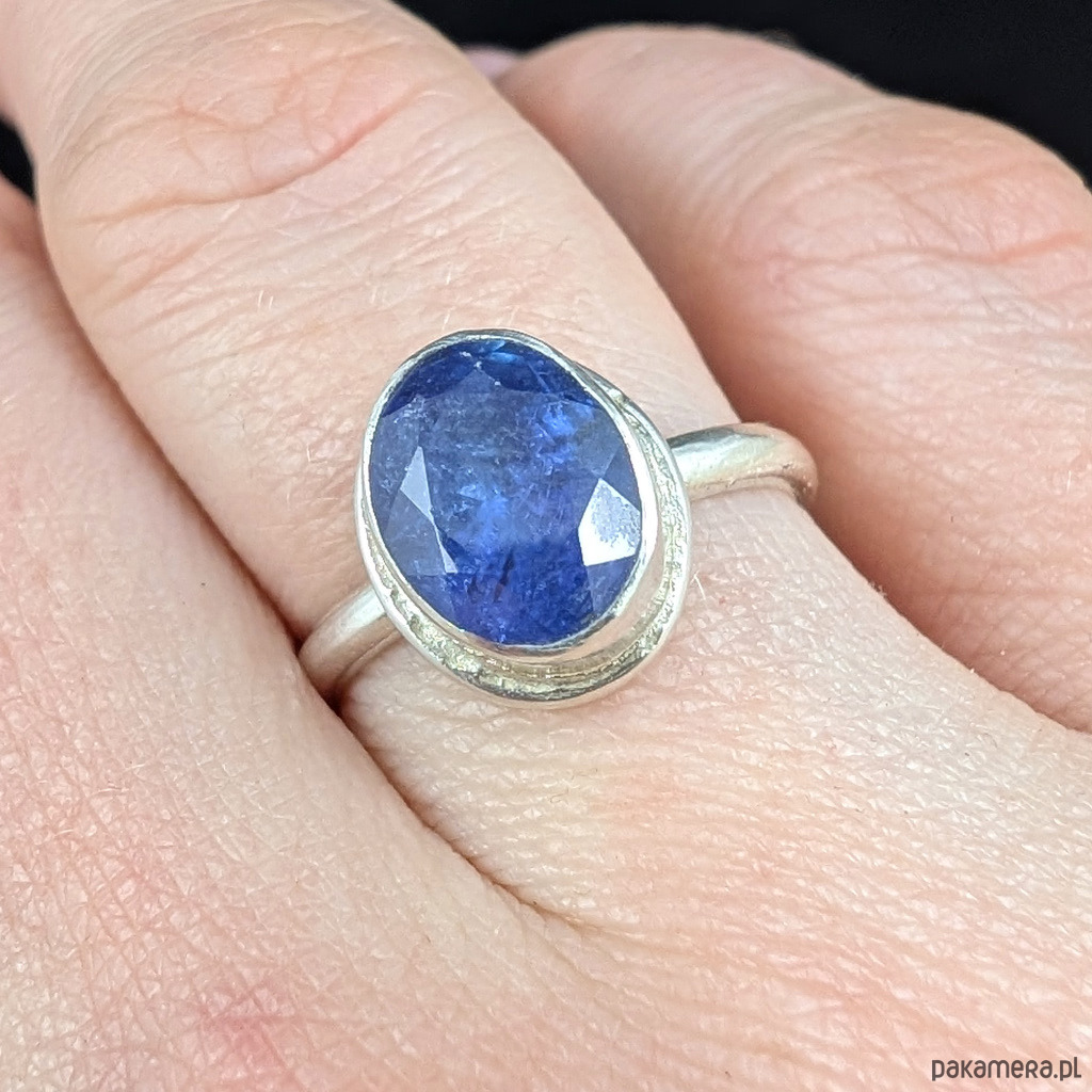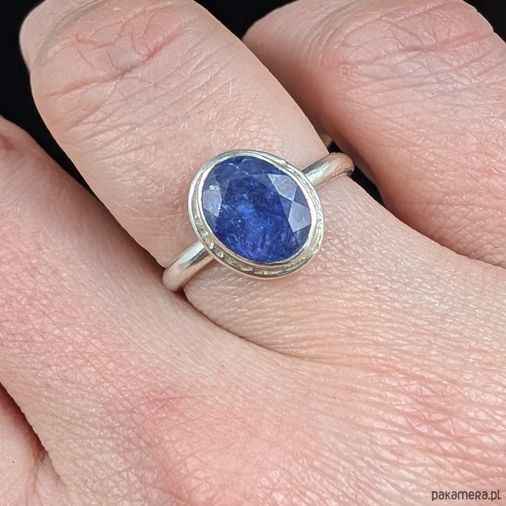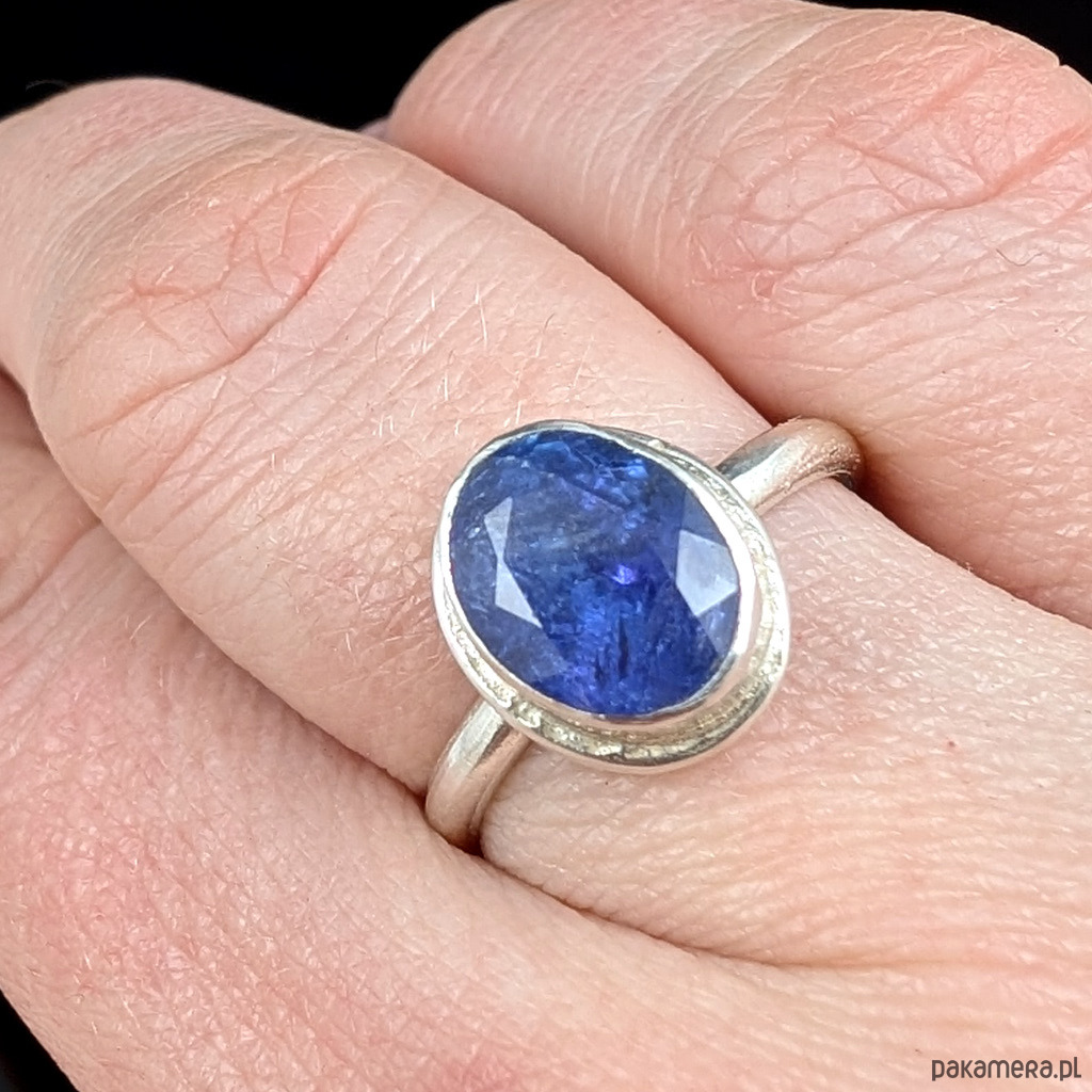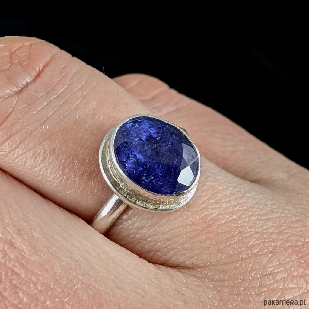 Wysokiej jakości świetlisty, fasetowany tanzanit w oprawie srebra próby 925.