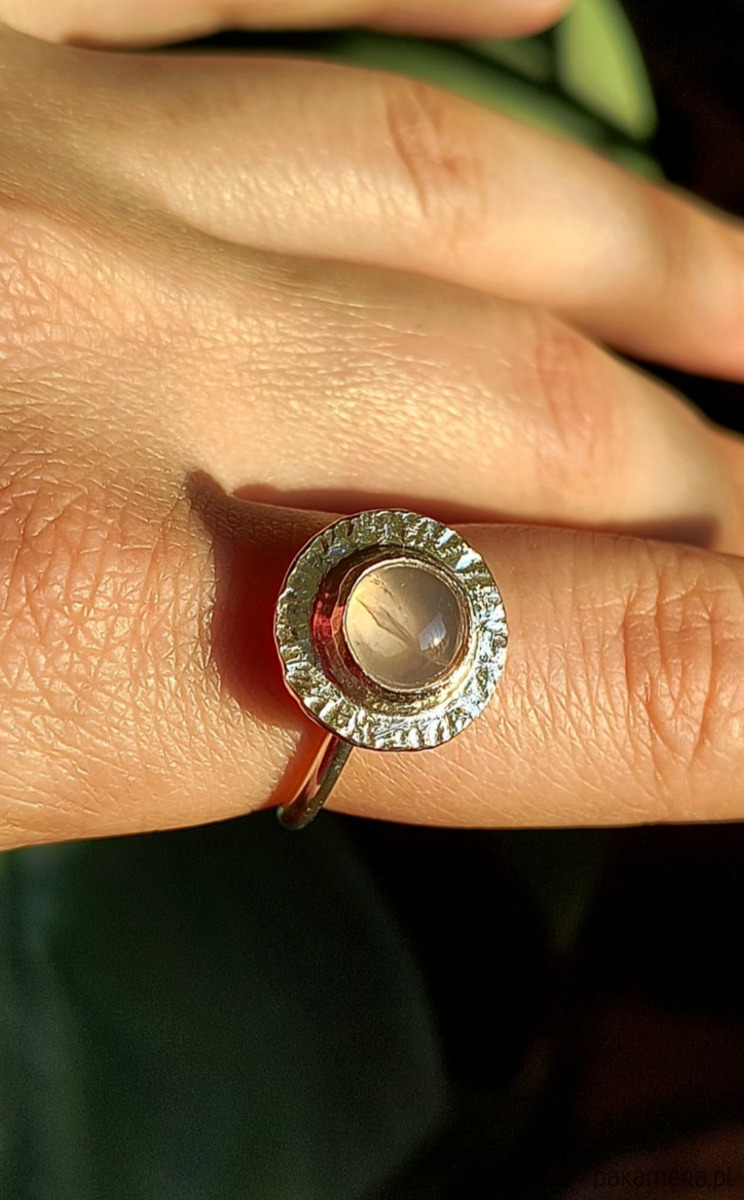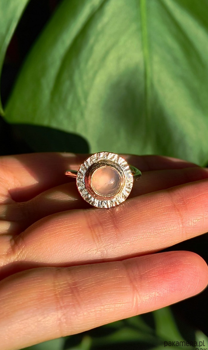 Pierścionek ROSE Kwarc Różowy kamień miłości regilowany, srebro 925
