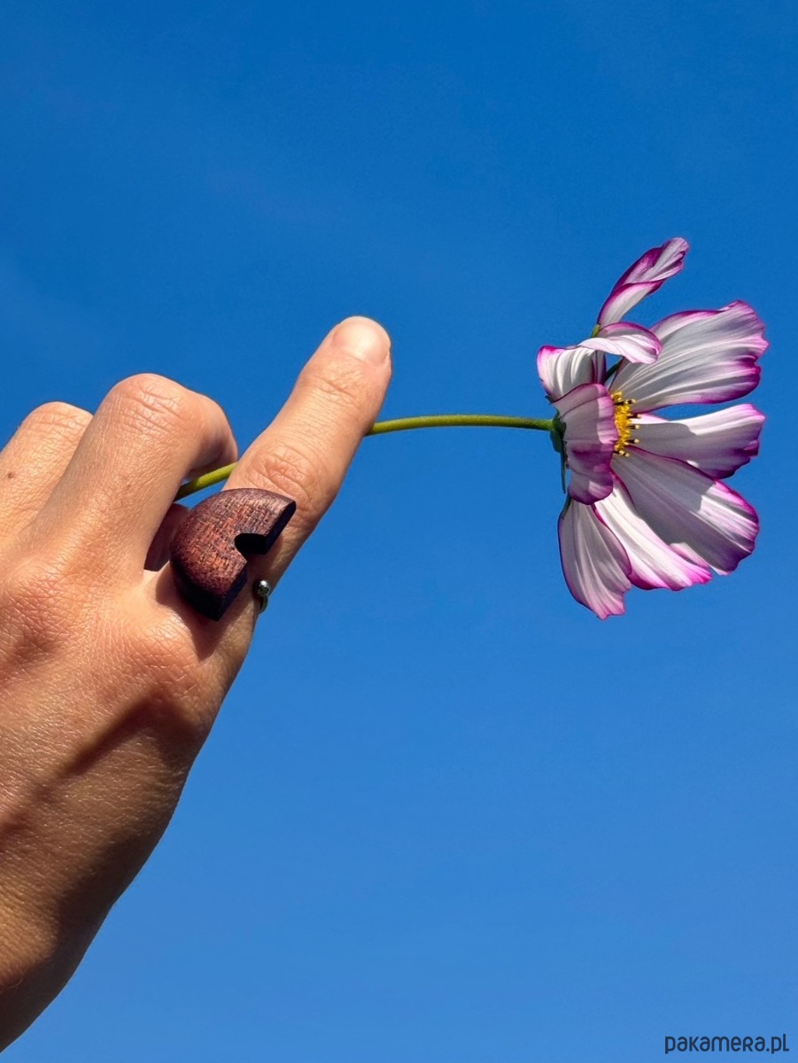 Wyjątkowy pierścionek z drewnianym elementem w stylu modernistycznym. Pierścionek wykonany został ręcznie z drewna sapeli, osadzony na regulowanej obrączce ze stali szlachetnej. To wyjątkowa biżuteria, łącząca w sobie naturalny urok drewna z elegancją złota. Idealny na wyjątkowe okazje oraz jako wyraz wysublimowanego stylu do noszenia na co dzień. Jeśli chcesz podkreślić swoją wyjątkową osobowość i indywidualny sznyt to ten pierścionek jest właśnie dla Ciebie.