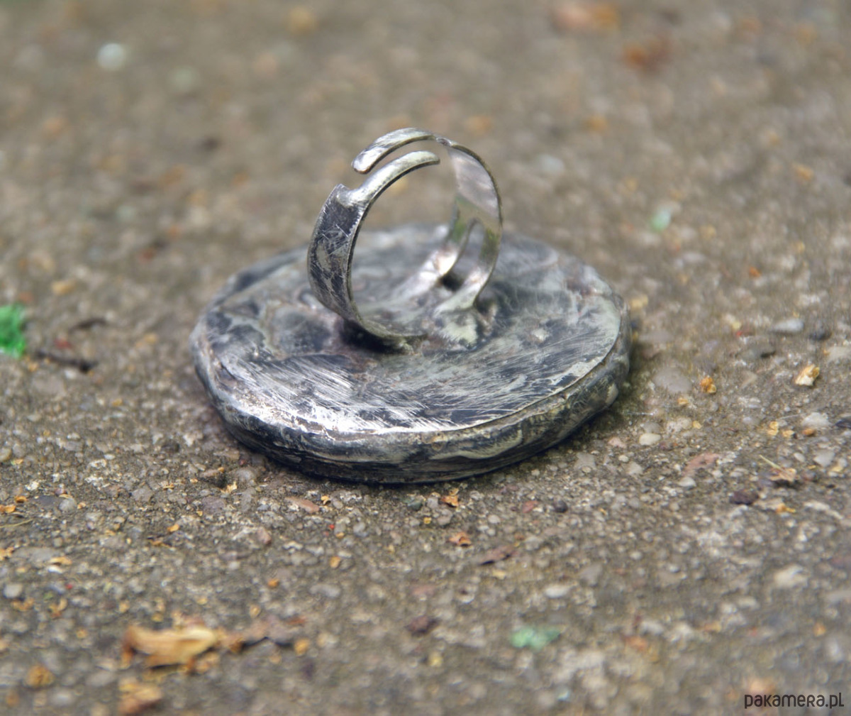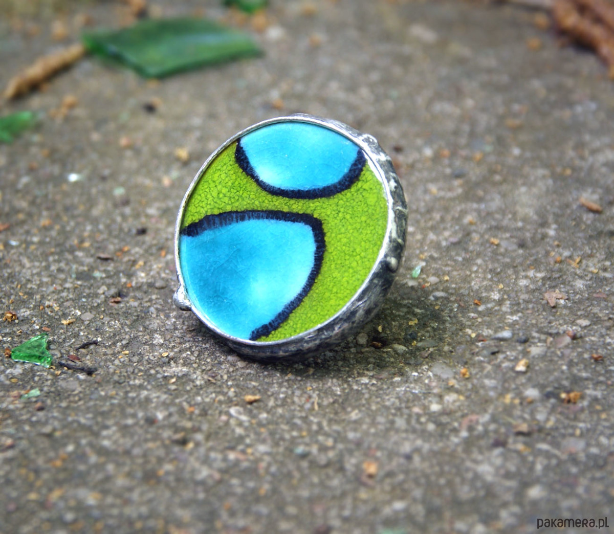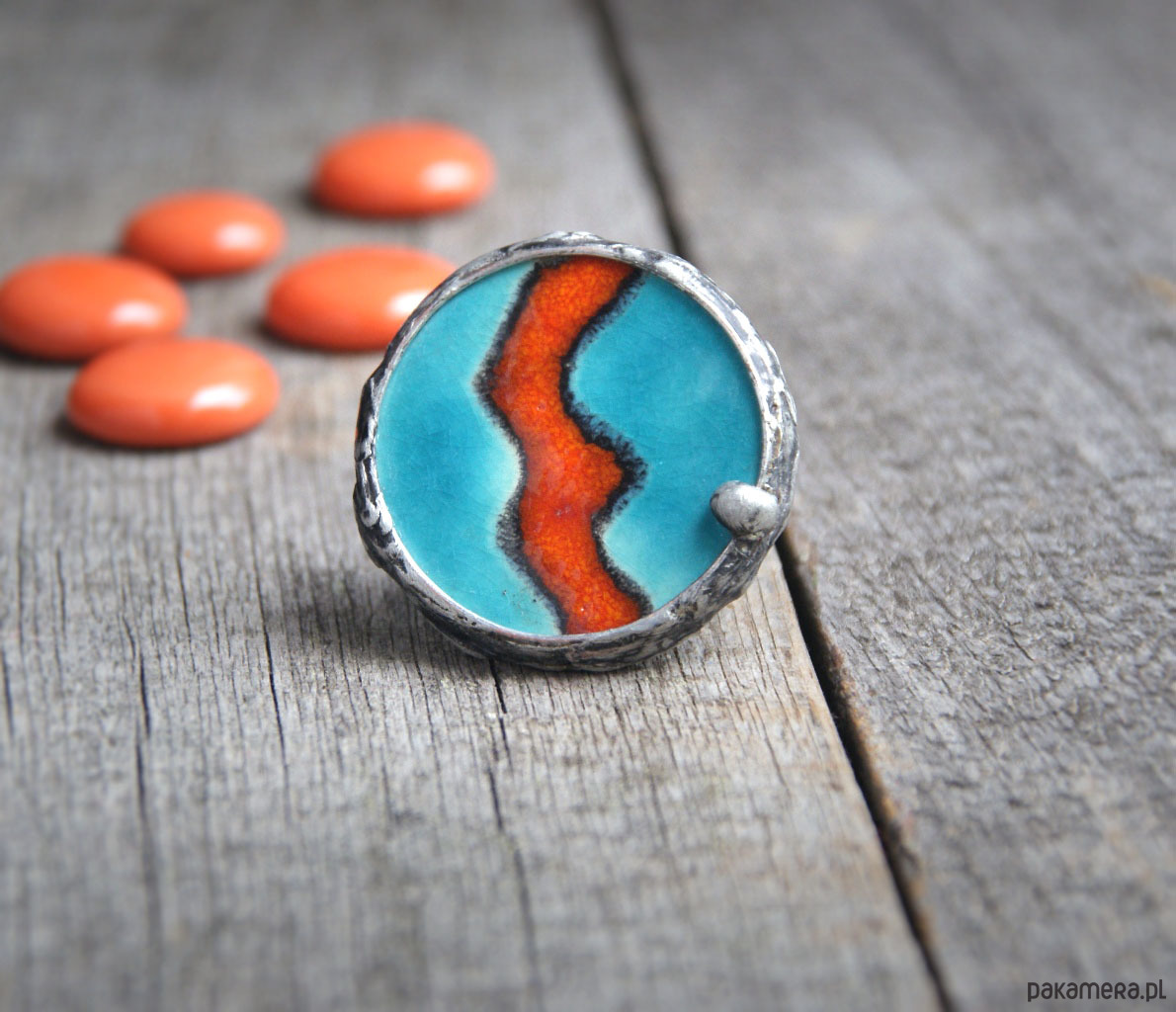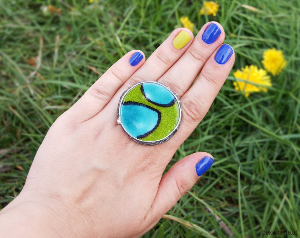 z dumą przedstawiam kolekcję OBŁĘDNYCH pierścieni - UNIKATY!!! każdy z nich wykonany jest z dużego, ceramicznego kaboszonu w soczystych kolorach. kaboszony zostały wykonane specjalnie na kaktusiowe zamówienie przez POLSKĄ artystkę. ja oprawiłam je starannie w technice Tiffany w grubą, surową ramę wykonaną z miedzi pokrytej ekologiczną cyną (bez ołowiu). aby jeszcze bardziej podkreślić wyraźną fakturę na bokach, pierścienie były patynowane (czernione) i przecierane. obrączki są REGULOWANE - nie trzeba martwić się o rozmiar ;-) ... każdy pierścień to ABSOLUTNY UNIKAT = świetny pomysł na wyjątkowy prezent!!! jedno serducho to efekt WIELOGODZINNEJ pracy... WIELKOŚĆ: 40mm. pierścienie pięknie i niezwykle okazale prezentują się na dłoni! przykuwają wzrok i urozmaicą każdą stylizację....