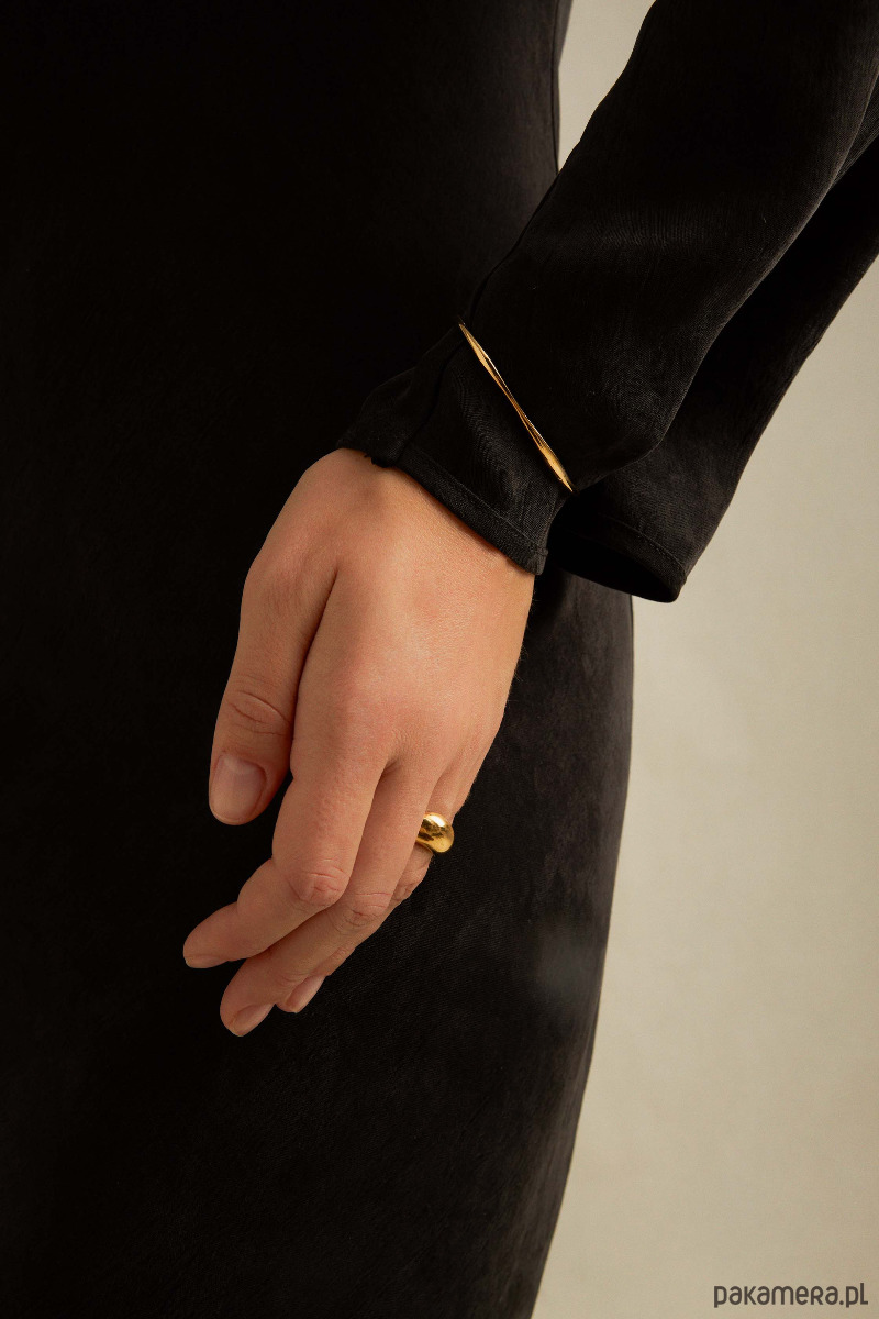 Wprowadź swoją dłoń w rytmy elegancji z naszym wyjątkowym pierścieniem Sanitatem. W kształcie podobny do płynącej rzeźby nada stylizacji wyjątkowy charakter, sprawiając, że nosząc go, stajesz się częścią artystycznej historii. Dodatkowo jego masywna forma skrywa w sobie drobną przestrzeń, która daje możliwość dopasowania do palca.