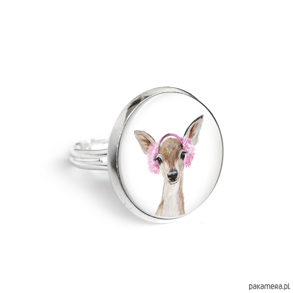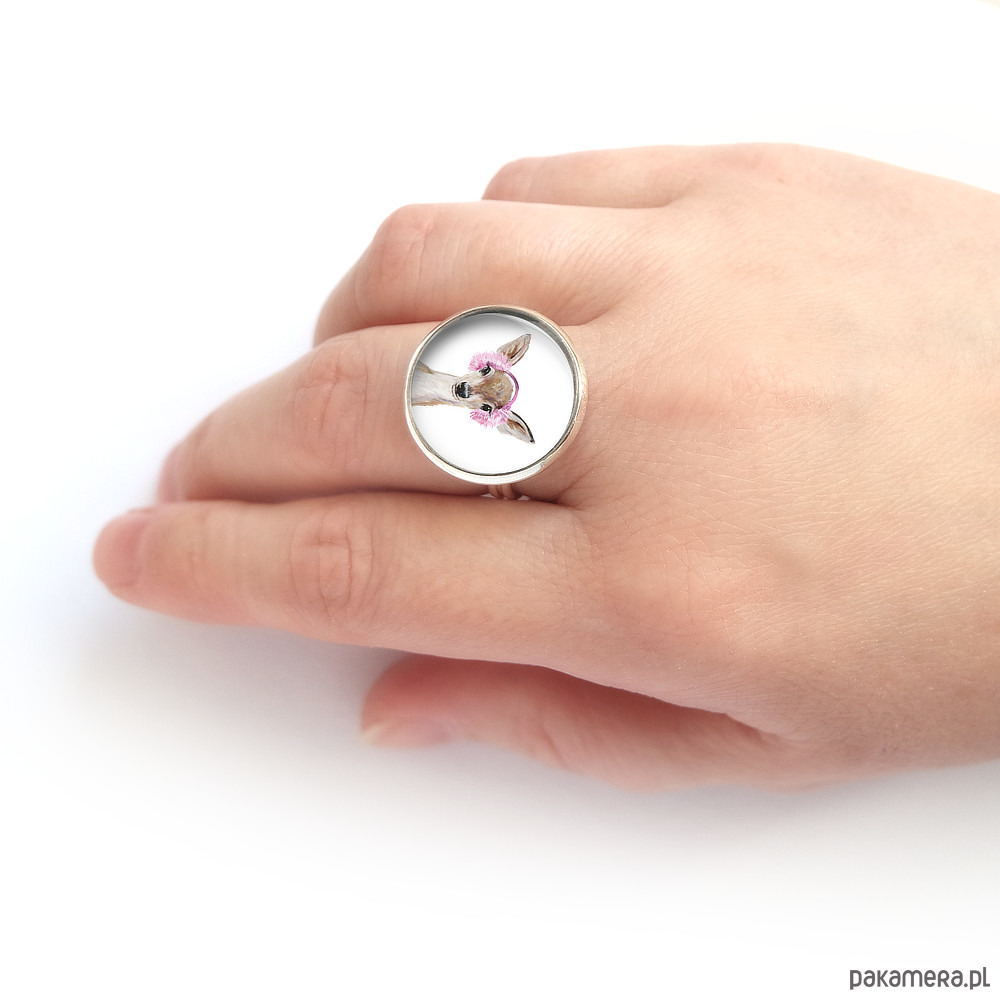 Grafika ukryta w prostym pierścieniu pod osłoną przeźroczystego półokrągłego szkiełka.