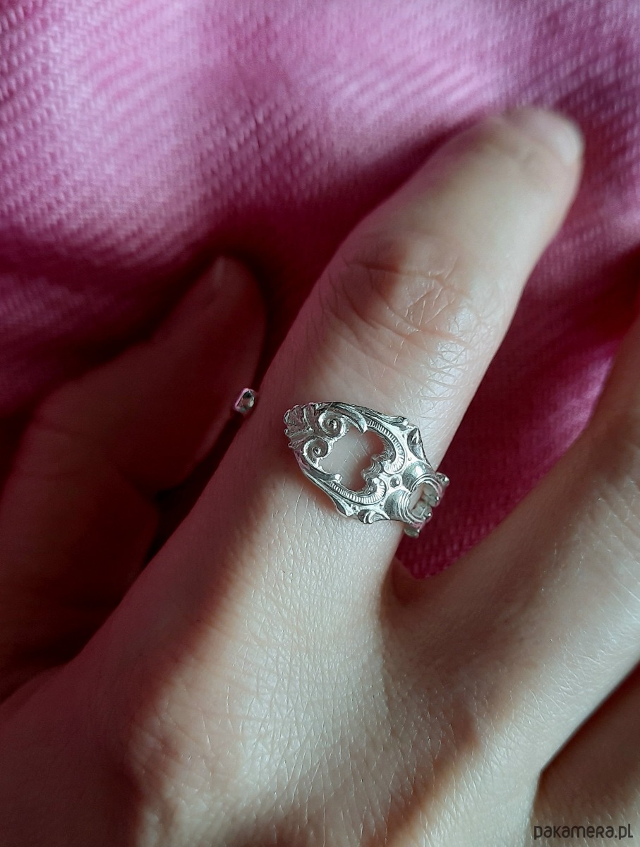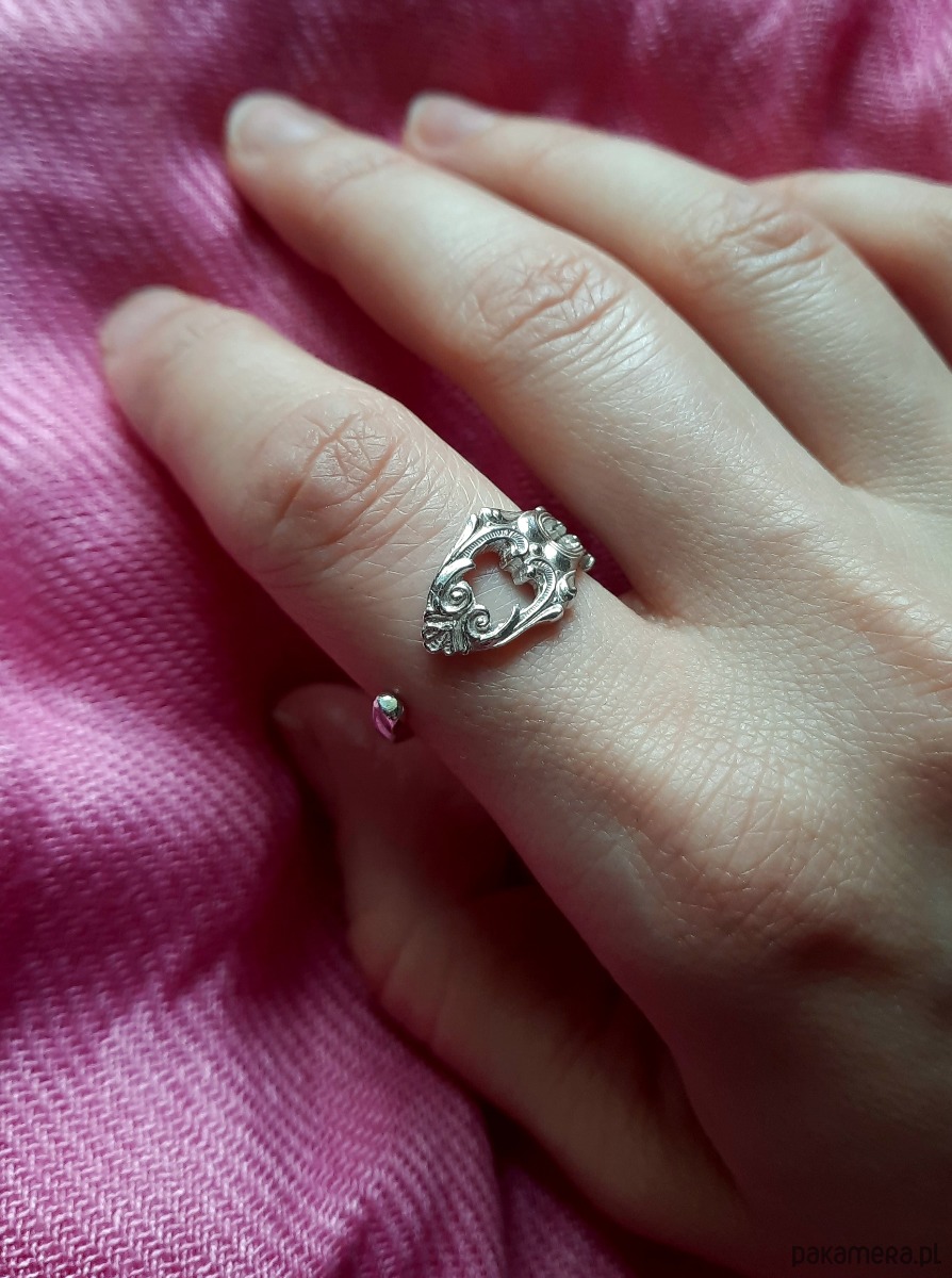 Do stworzenia pierścionka inspiracją była dawna łyżeczka do herbaty. Urzekła mnie swoim pięknem i pomyślałam, że równie czarująco wyglądać będzie na dłoni :)