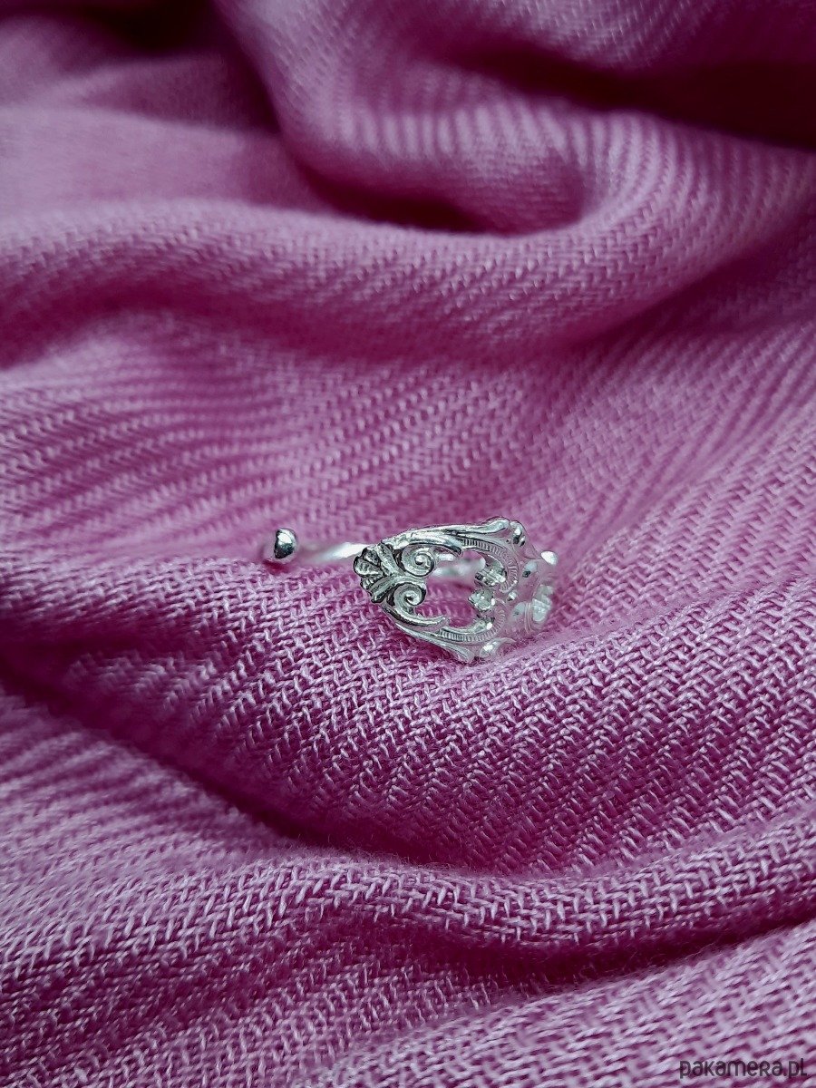 Pierścionek wykonałam ze srebra próby 925. Jest on otwarty, dzięki czemu możesz go delikatnie rozgiąć, lub zacisnąć, by zmienić rozmiar.