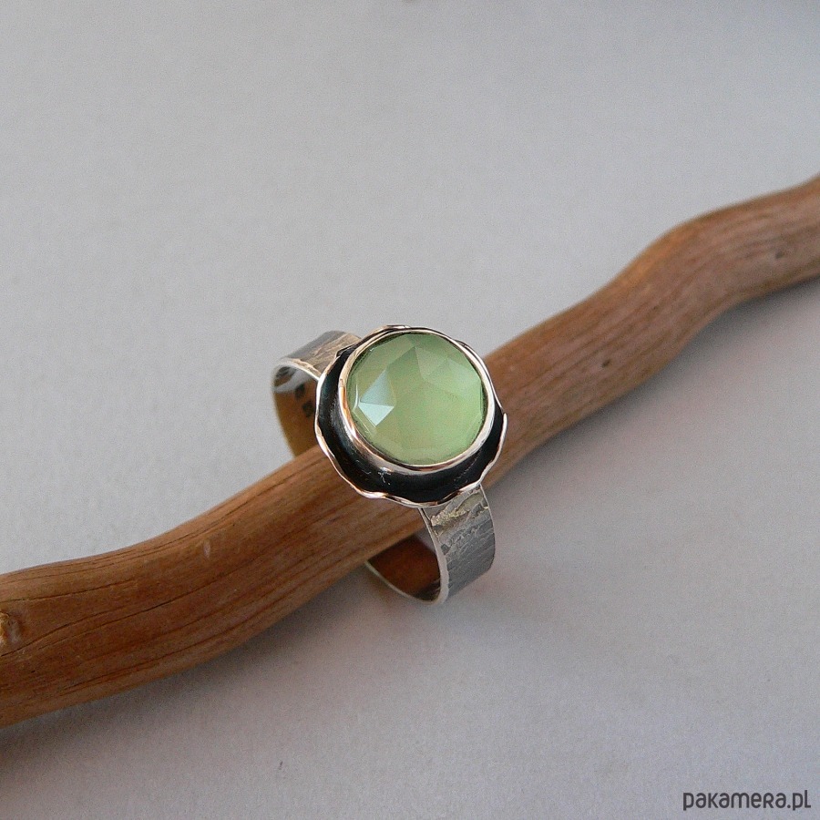 Pierścionek -seledynowy agat w falbankach-